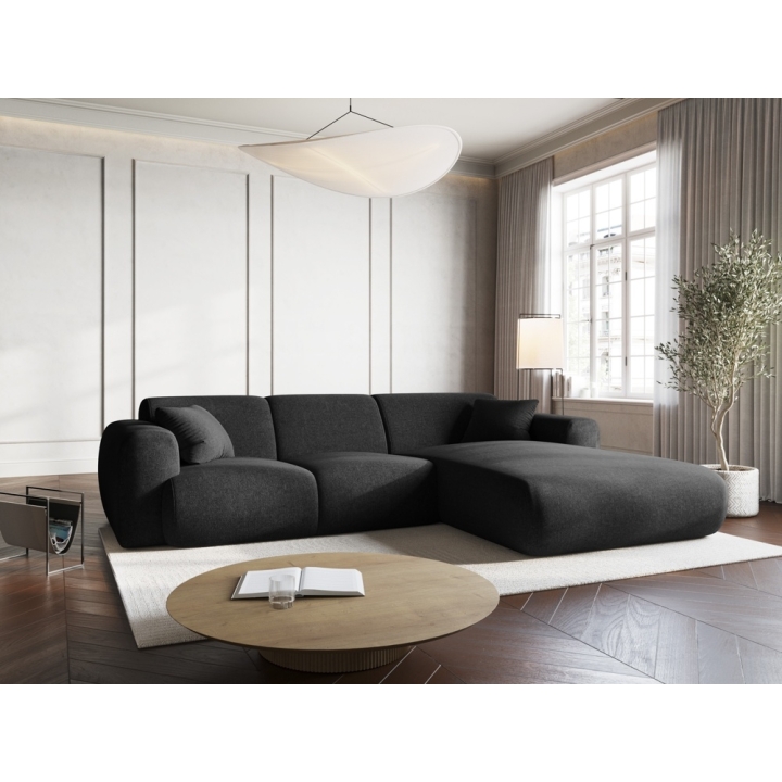 The Nolio 260x170 4-seater corner sofa Cosmopolitan-design is the ideal solution for those who appreciate spaciousness and comfort in their living room. Made from Haga chenille fabric, it features a 3D effect that gives it a unique character. The colour scheme to choose from allows you to customise the corner sofa to your individual preferences, while the black plastic legs add a modern touch.