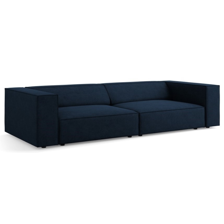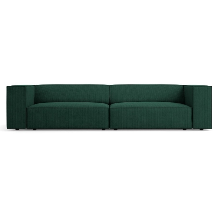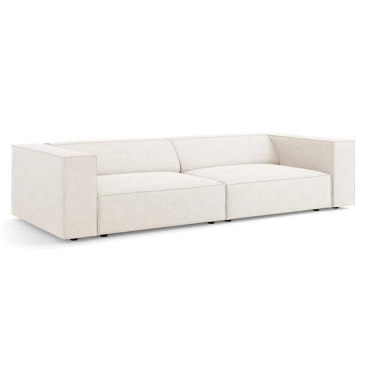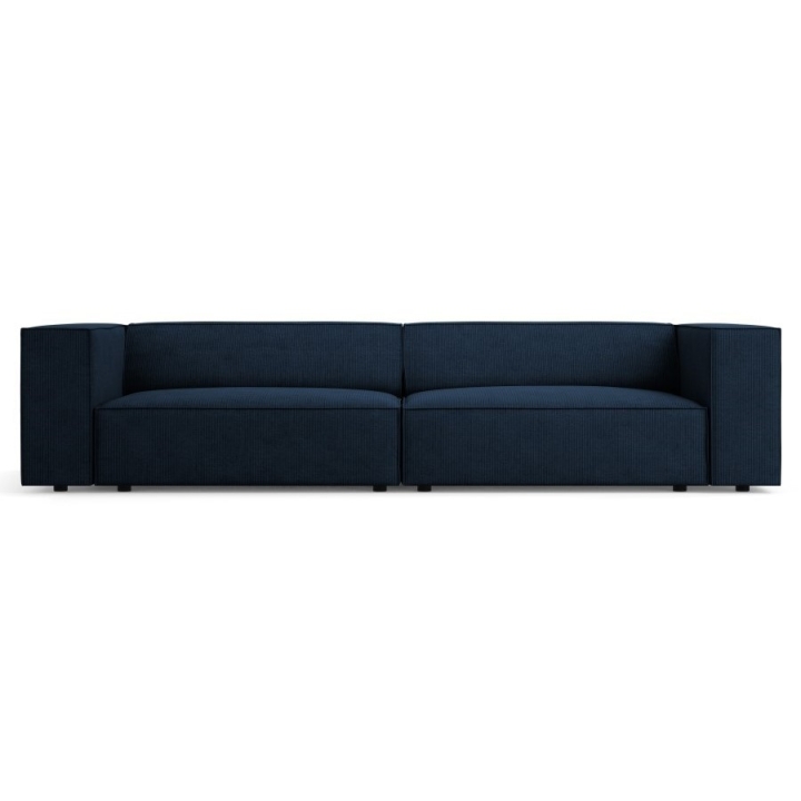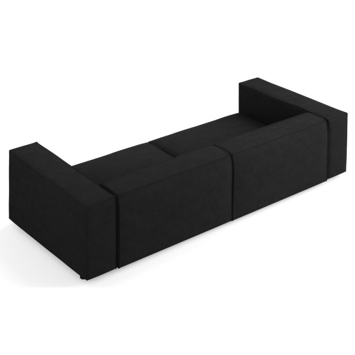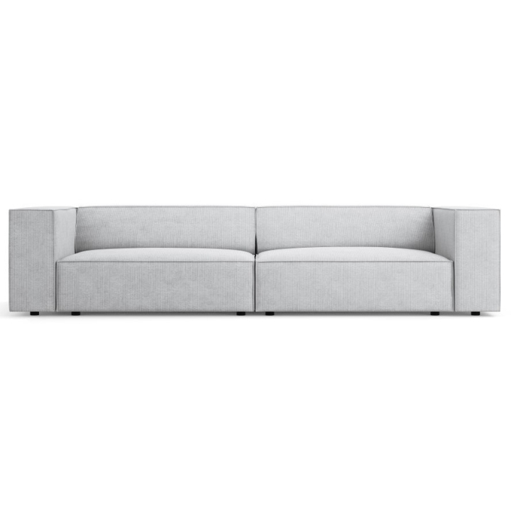 The Arendal 4S 4-seater sofa chenille with corduroy effect by Cosmopolitan Design is a modern piece of furniture with a spacious form that stands out for its refined lines and comfortable seating. Its generous structure promotes comfortable lounging, while the carefully chosen proportions ensure a harmonious look. The filling of corrugated spring, polyurethane foam and a layer of wadding guarantees optimum springiness and softness, increasing the comfort of use. The sofa sits on low, black legs, which emphasise its modern character, while at the same time giving lightness to the piece.