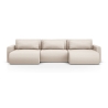 The Belfast 4-seater corner sofa with a sleeping function and a bedding container Belfast Structural Fabric Cosmopolitan-Design is a large, comfortable piece of furniture created with spacious interiors in mind. The corner sofa is 340 cm wide, 149 cm deep, 84 cm high, with 18 cm wide and 60 cm high armrests. The U-shaped model is equipped with two wide recliners with a usable depth of 114 cm to 132 cm ( the total depth of each is 149 cm) and a width of 102 cm which provide a large area for lounging. The black plastic base guarantees stability and the upholstery in structured fabric, available in a variety of colours, allows you to match the furniture to your interior design.