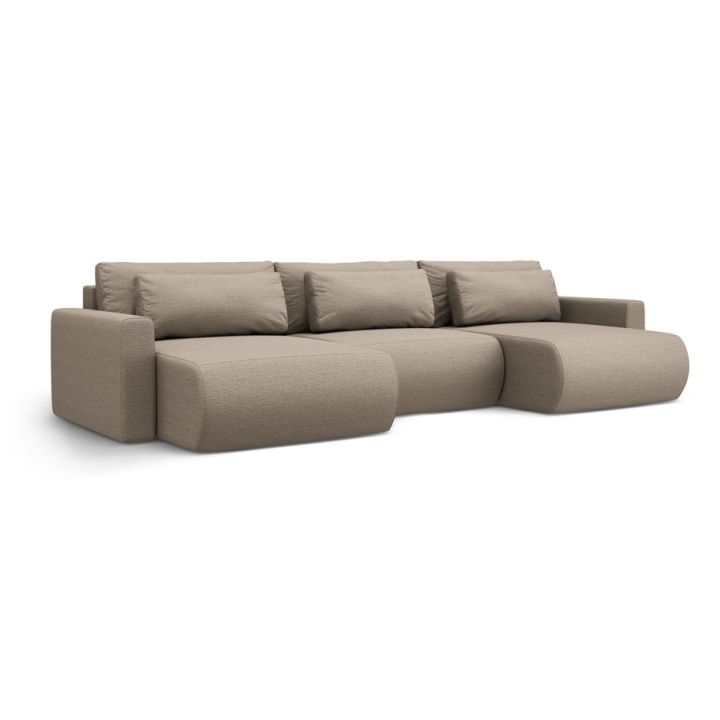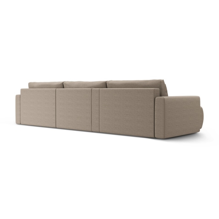 The furniture frame is made of solid pine wood, particle board, fibreboard and plywood, which ensures the solidity and longevity of the furniture. Decorative cushions as standard increase the comfort of use. The 4-seater corner sofa with a sleeping function and a bedding container is an ideal solution for those looking for a large and comfortable corner sofa for the living room.