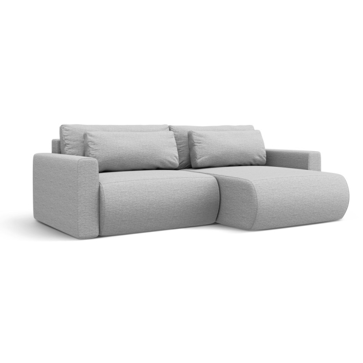 The frame is made of solid pine, particleboard, fibreboard and plywood to ensure durability and stability of the structure. Decorative cushions as standard add to the comfort of use. The 3-seater corner sofa with a sleeping function and a bedding container is a practical choice for modern interiors.