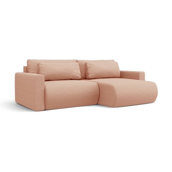 The frame is made of solid pine, particleboard, fibreboard and plywood to ensure durability and stability of the structure. Decorative cushions as standard add to the comfort of use. The 3-seater corner sofa with a sleeping function and a bedding container is a practical choice for modern interiors.