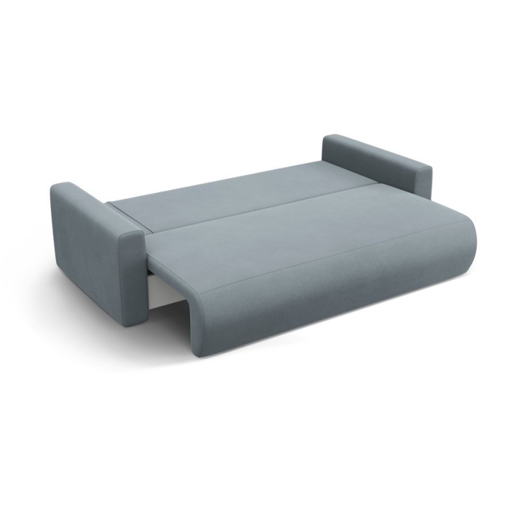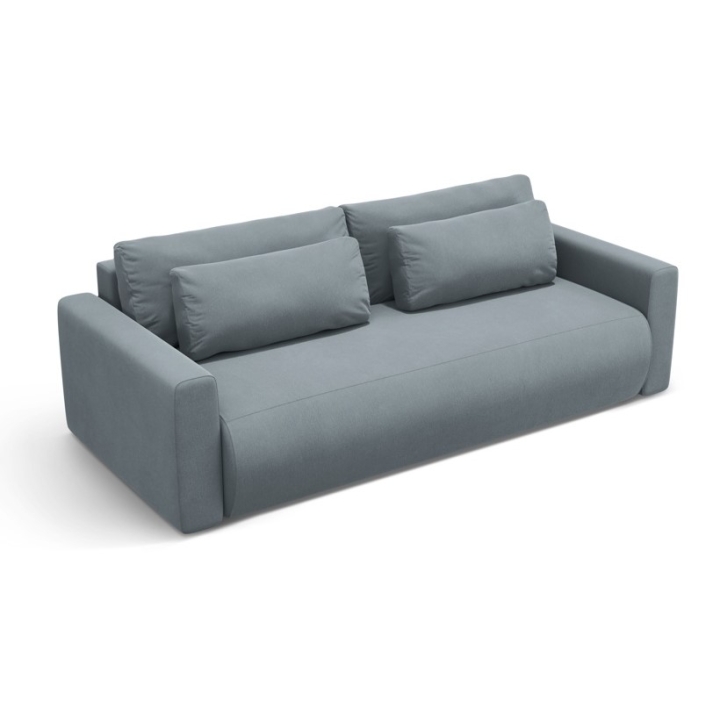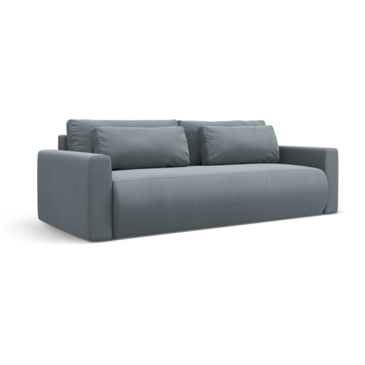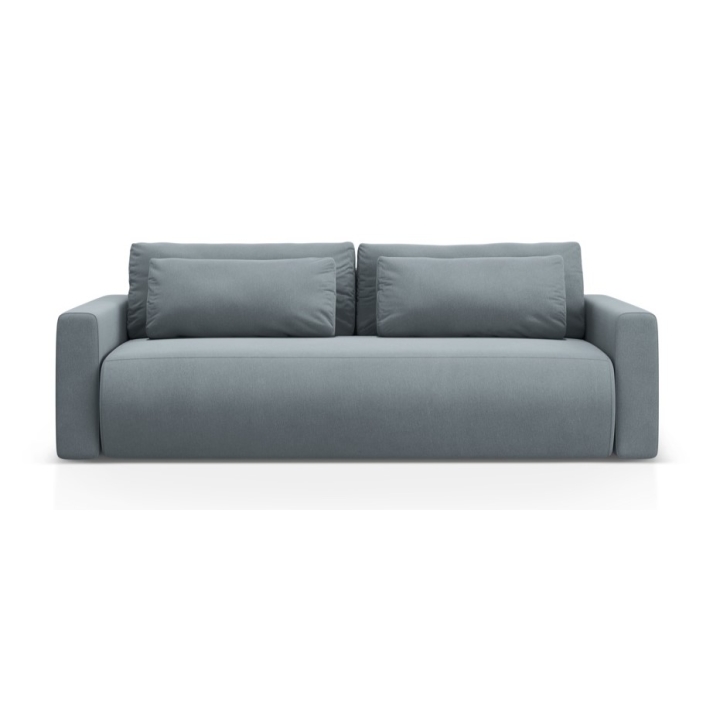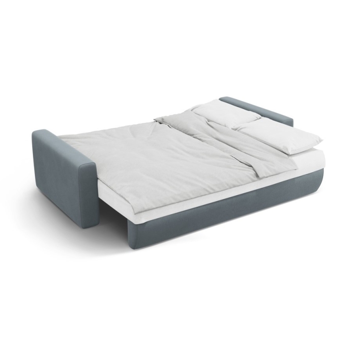 The seat made of polyurethane foam with a density of 30 kg/m³ and a layer of 200 g/m² cotton wool combined with corrugated springs guarantees comfort and resistance to deformation. The backrest filled with cut foam and silicone provides comfortable back support. The 200 × 155 cm sleeping function allows for a comfortable rest, and the bedding container increases the usability of the furniture, making it easier to store additional textiles.