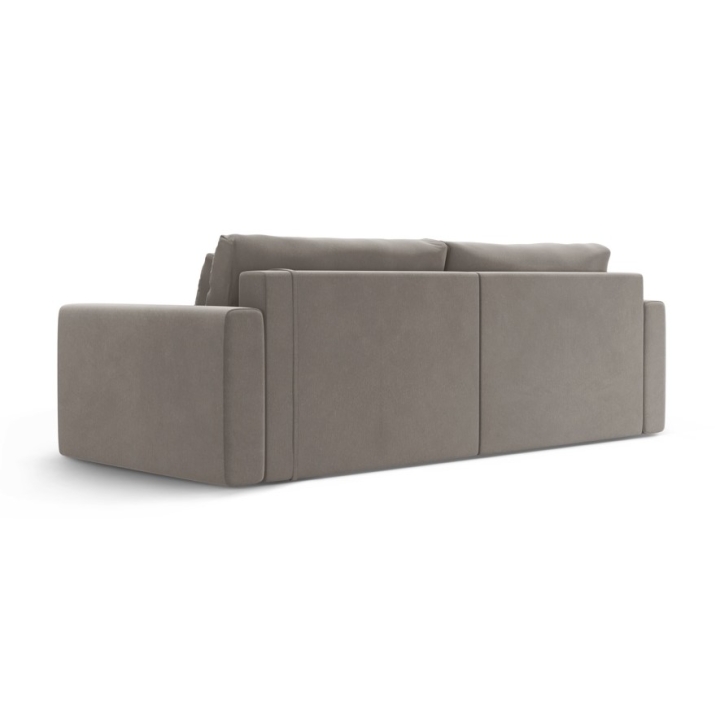 The frame is made of solid pine, particleboard, fibreboard and plywood to ensure durability and stability of the structure. Decorative cushions as standard add to the comfort of use. The 3-seater corner sofa with a sleeping function and a bedding container is a choice for modern living room interiors or TV rooms.