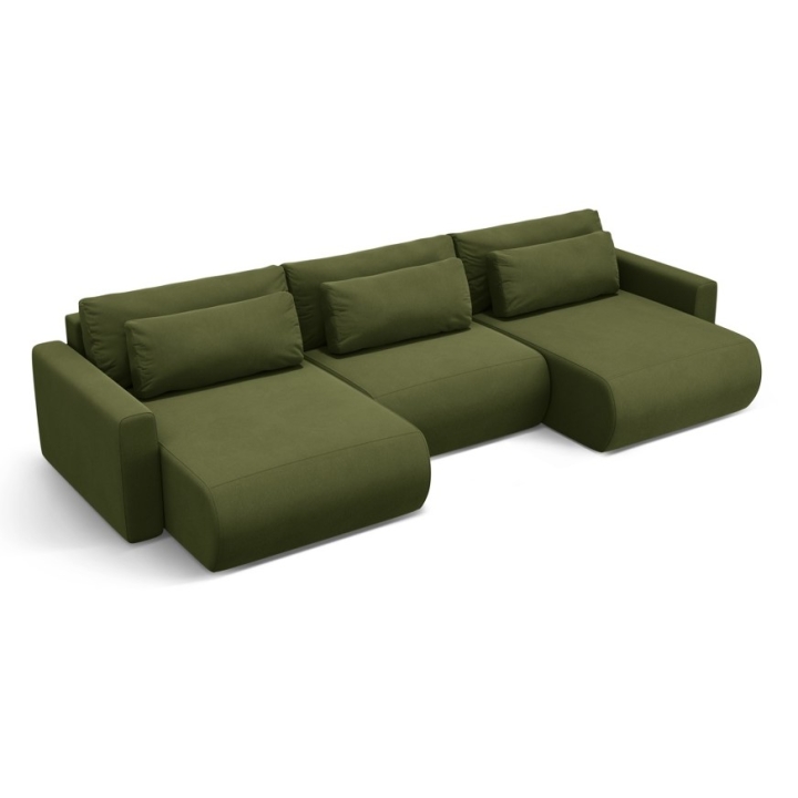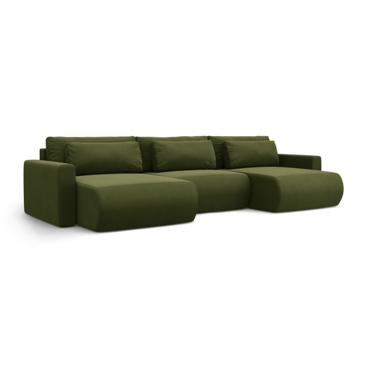 The frame of the corner sofa is made of solid pine wood, particleboard, fibreboard and plywood, which ensures the solidity and longevity of the furniture. Decorative cushions as standard add to the comfort of use. The 4-seater corner sofa with a sleeping function and a bedding container is a perfect solution for those looking for a large and comfortable corner sofa for the living room.