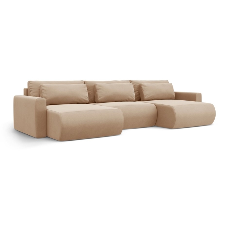 The frame of the corner sofa is made of solid pine wood, particleboard, fibreboard and plywood, which ensures the solidity and longevity of the furniture. Decorative cushions as standard add to the comfort of use. The 4-seater corner sofa with a sleeping function and a bedding container is a perfect solution for those looking for a large and comfortable corner sofa for the living room.