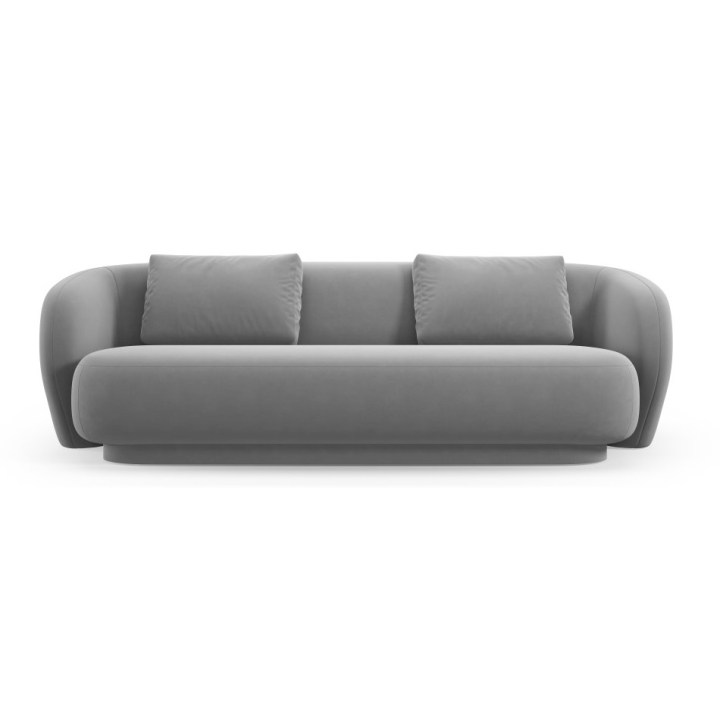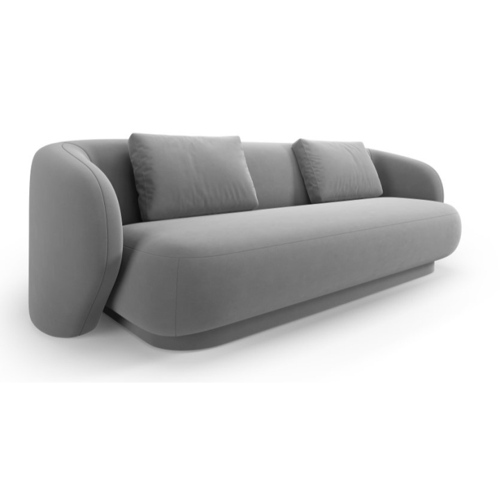 The Camden Velour Cosmopolitan-design 3-seater so fa is a modern piece of furniture that fits perfectly in living rooms, guest rooms and lounge areas. The sofa is 204 cm wide, 102 cm deep, 72 cm high and the seat height is 39 cm. A model with a simple, minimalist design, without a sleeping function or a bedding container, it has been designed with everyday use in mind.