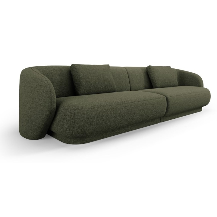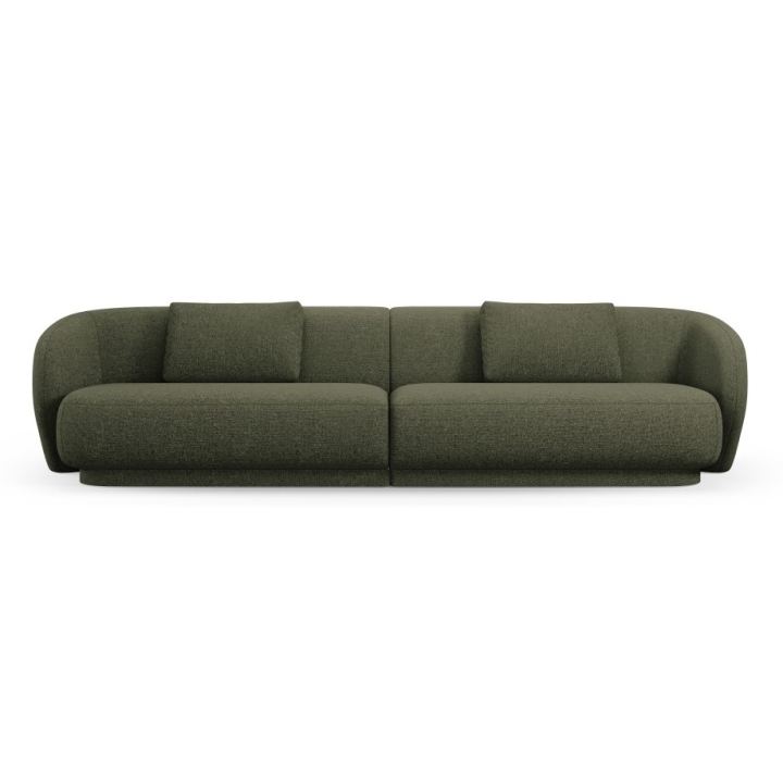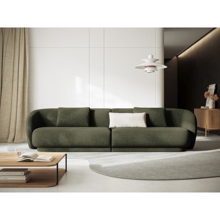 The Camden 4-seater chenille Cosmopolitan-design sofa is a designer model with a modern look that is ideal for spacious living rooms and lounge areas. The sofa is 304 cm wide, 102 cm deep, 72 cm high and the seat height is 39 cm. The characteristic rounded form gives the furniture a modern look, and the lack of headrests emphasises the minimalist design. The model does not have a sleeping function or a bedding container, so great comfort can be achieved.
