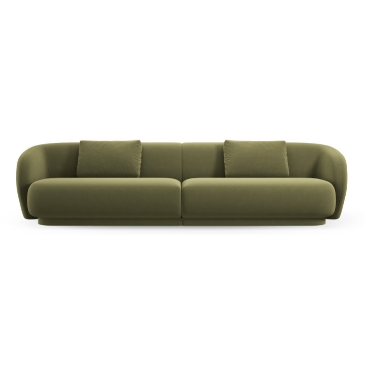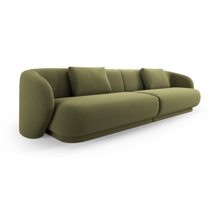 The Camden 4-seater velour Cosmopolitan-design sofa is a designer model with a modern look that is ideal for spacious living rooms and lounge areas. The sofa is 304 cm wide, 102 cm deep, 72 cm high and the seat height is 39 cm. The characteristic rounded form gives the furniture a modern look, and the lack of headrests emphasises the minimalist design. The model does not have a sleeping function or a bedding container. The sofa is supplied without cushions - available for purchase separately.