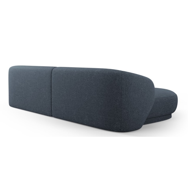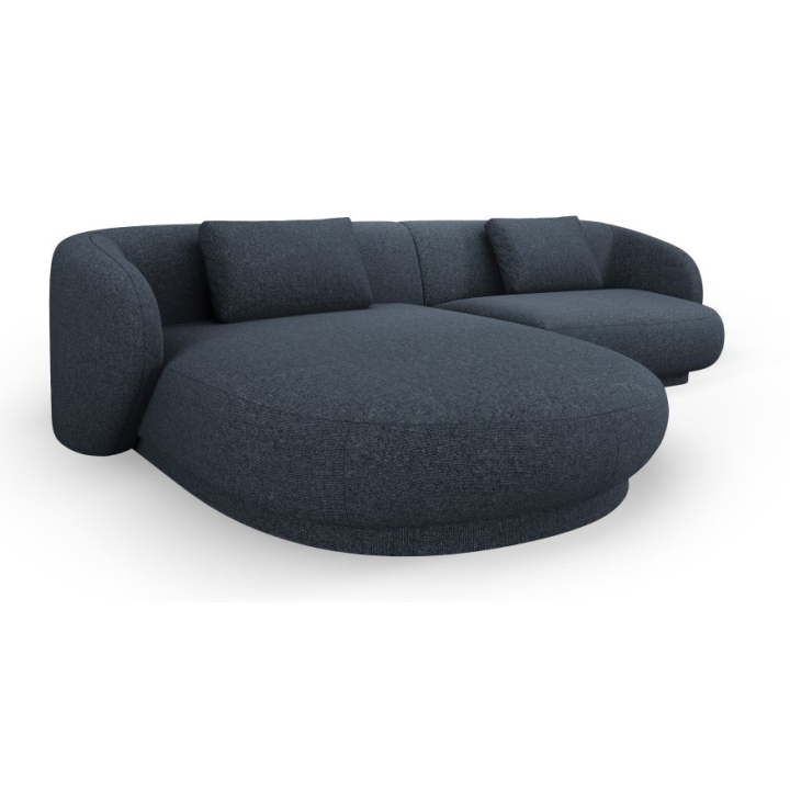 The Camden 4-seater Chenille Cosmopolitan-design corner sofa is a modern piece of furniture with a rounded shape that fits perfectly in contemporary living room interiors. The width of the corner is 289 cm, the depth of the longer side is 177 cm, the shorter side is 102 cm and the height is 72 cm. The seat height is 39 cm, which ensures a comfortable sitting position. The model does not have a sleeping function or a bedding container. The corner sofa is set on low black plastic legs, which emphasise the modern design.