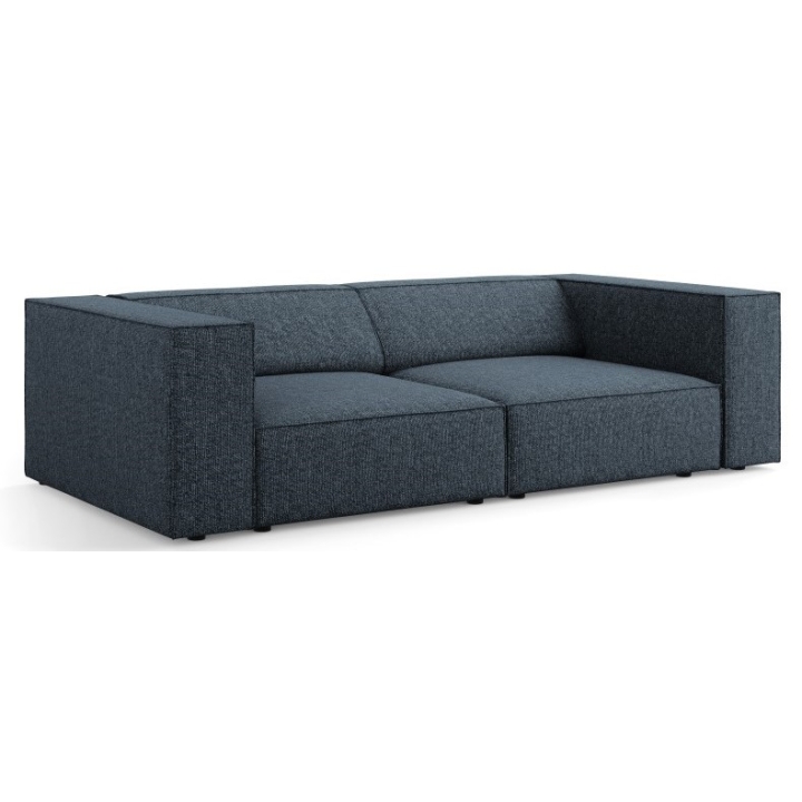 The low black legs harmonise with the body of the sofa, giving it a solid and coherent look. The dimensions of the sofa are 204 cm wide, 102 cm deep and 70 cm high, with a maximum load capacity of 300 kg, which guarantees stability and durability of use.