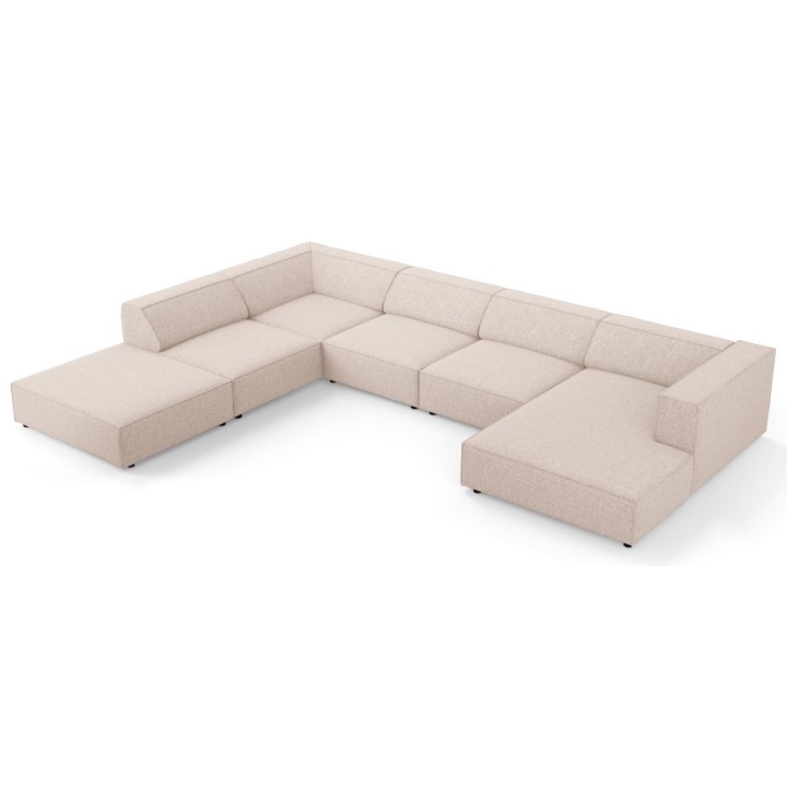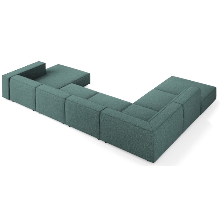The furniture is distinguished by its solid workmanship and stable construction with a maximum load capacity of 650 kg. Comfort of use is ensured by springs placed in the seat and filling consisting of polyurethane density foam and a layer of non-woven fabric. The width of the armrests is 22 cm and their height is 54 cm, which allows for comfortable support of the arms. The corner is supported by 2 cm high black plastic legs, which provide stability and subtle elevation of the structure above the floor. The whole piece weighs 182 kg, which testifies to the massive structure and durability of the furniture.