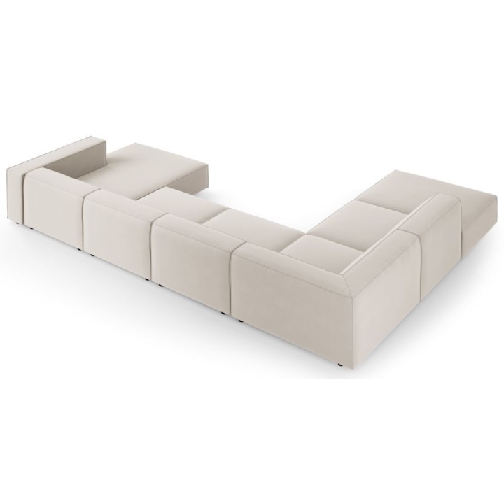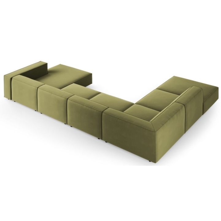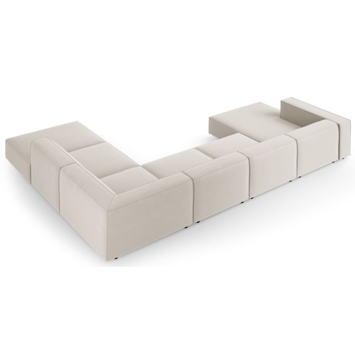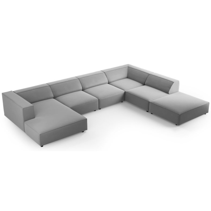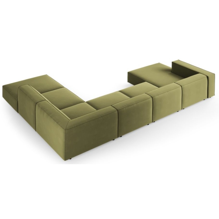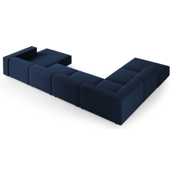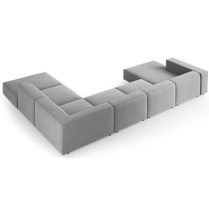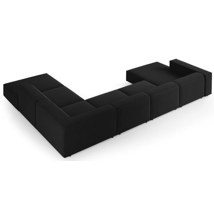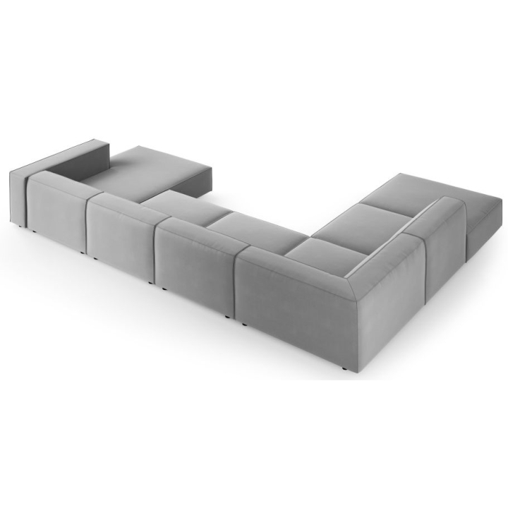 The 7-seater Arendal velour sofa bed by Cosmopolitan Design is a spacious lounge furniture with a solid construction. It has a width of 364 cm and a total depth of 262 cm. The overall height reaches 70 cm, while the seat is at a height of 40 cm. This model comes with two chaise longues - a longer one measuring 262 cm long and 102 cm wide and a shorter one measuring 166 cm long at the same width.