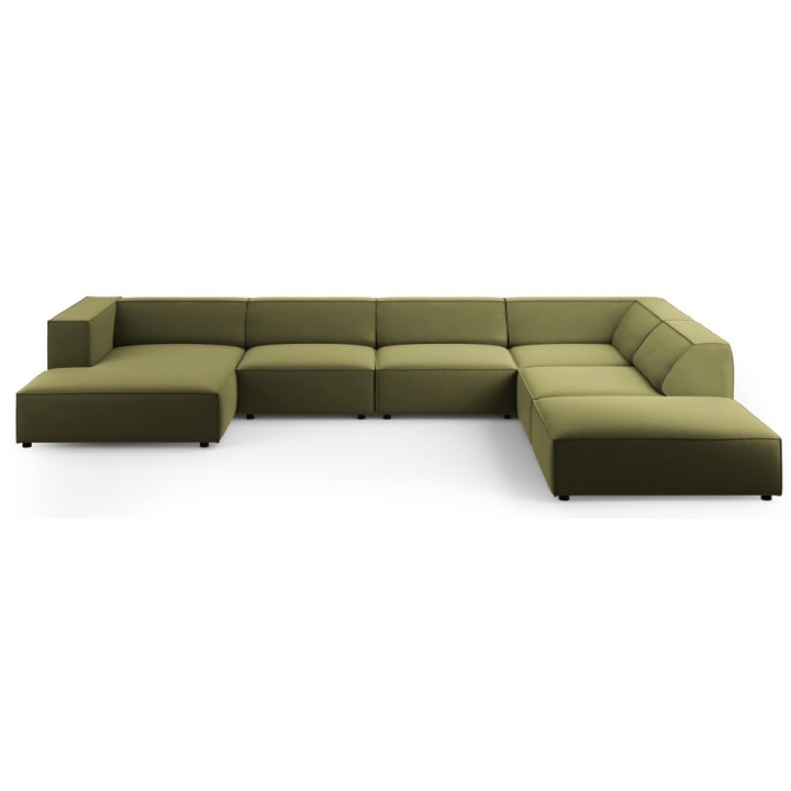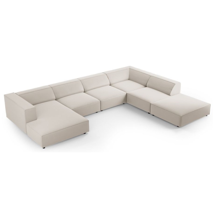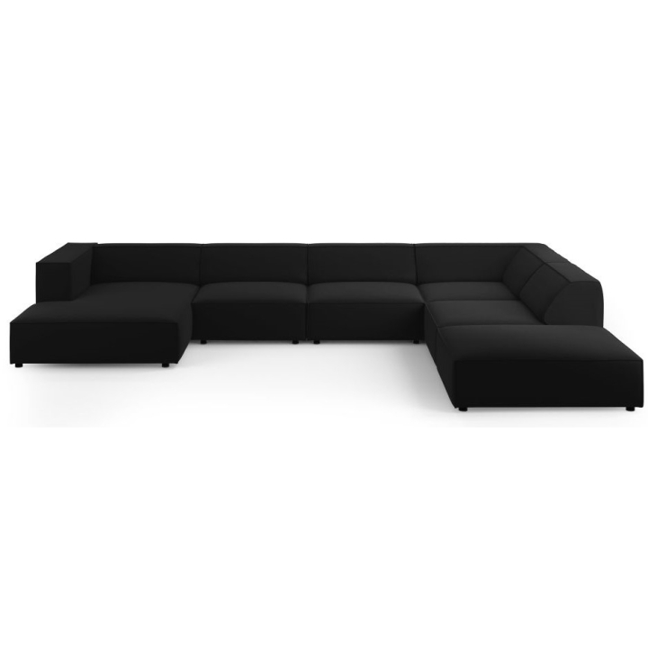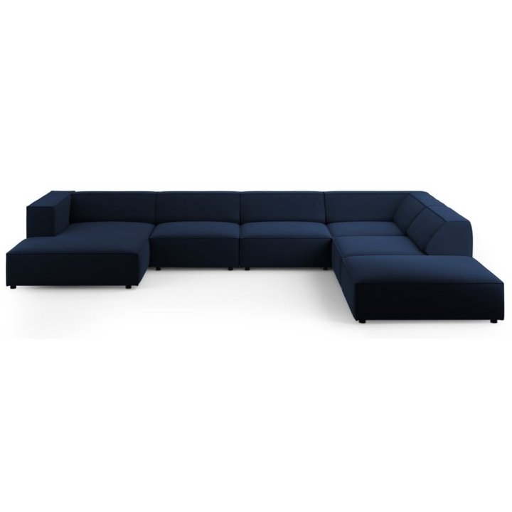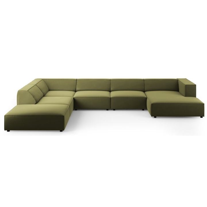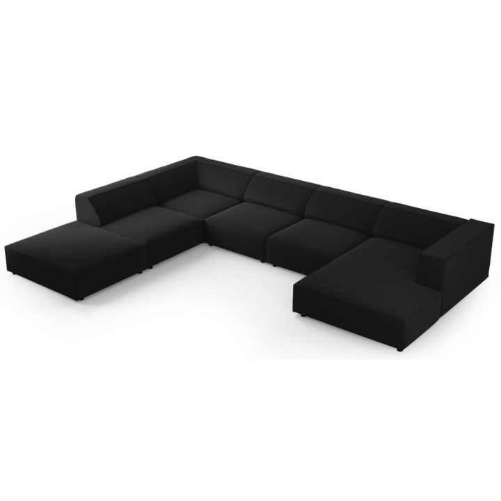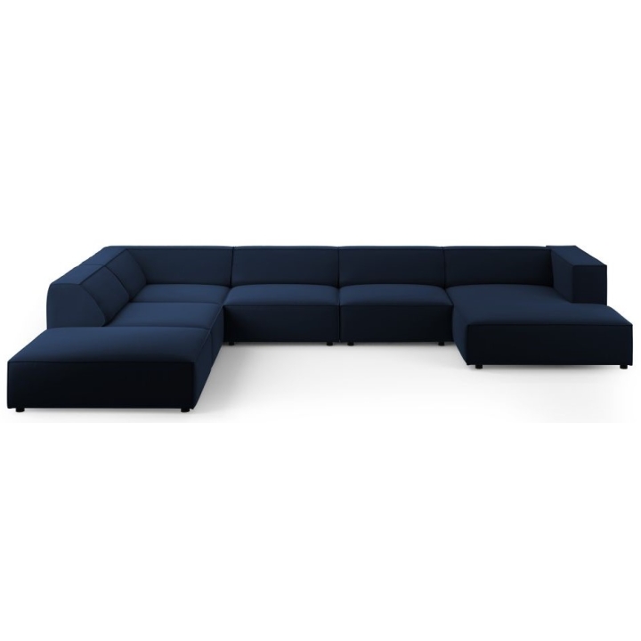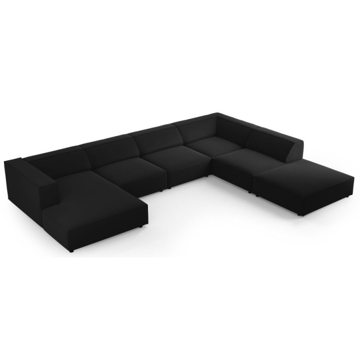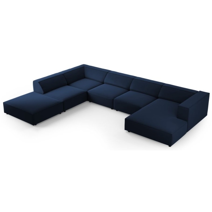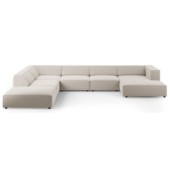 The 7-seater Arendal velour sofa bed by Cosmopolitan Design is a spacious lounge furniture with a solid construction. It has a width of 364 cm and a total depth of 262 cm. The overall height reaches 70 cm, while the seat is at a height of 40 cm. This model comes with two chaise longues - a longer one measuring 262 cm long and 102 cm wide and a shorter one measuring 166 cm long at the same width.