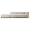 The structure is 262 cm wide, 102 cm deep and 70 cm high. The seat is at 40 cm and the armrests measure 22 cm wide and 54 cm high. The sofa is supported by 2 cm high black plastic legs and has a maximum load capacity of 300 kg.
