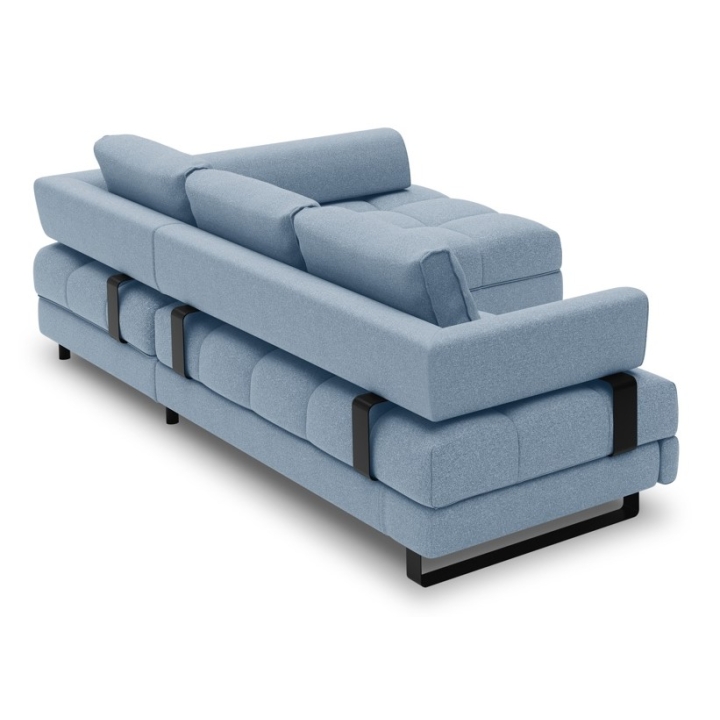 The seat filled with 30 kg/m³ polyurethane foam combined with corrugated springs guarantees comfort and resistance to deformation. The silicone-filled backrest provides soft and flexible back support. The structured Solid fabric with its tactile texture is resistant to abrasion (Martindale test: 90,000) and dirt, and the waterproof technology protects against the ingress of liquids, making the corner sofa suitable for homes with children and pets.