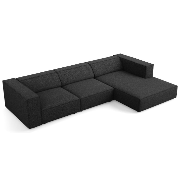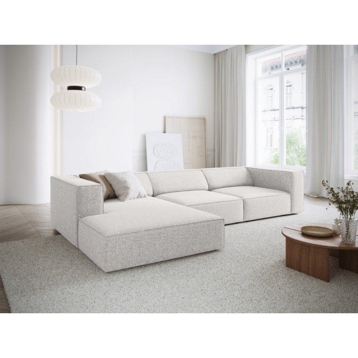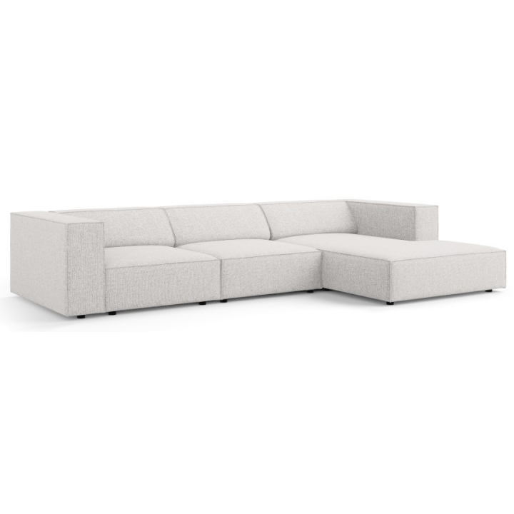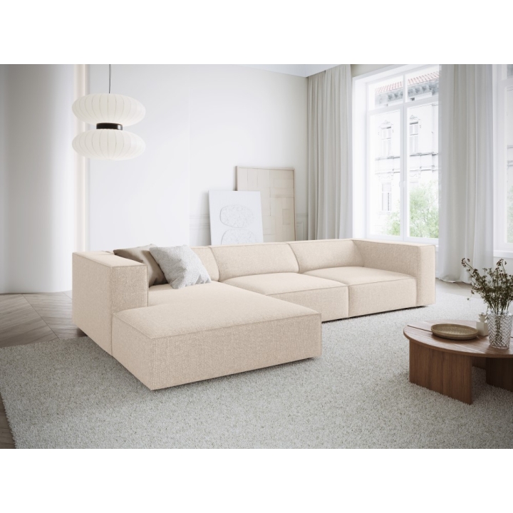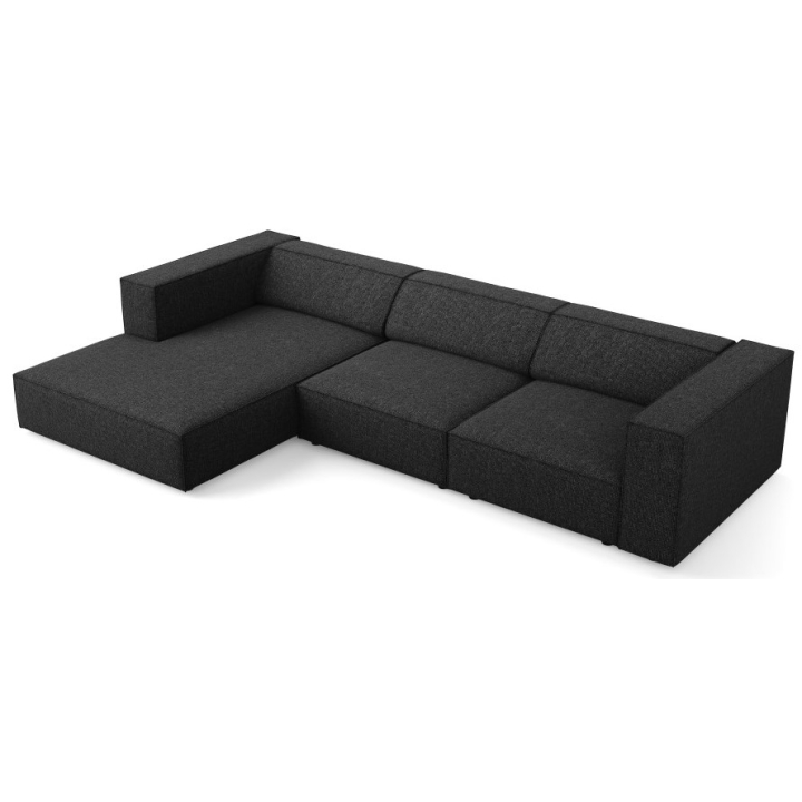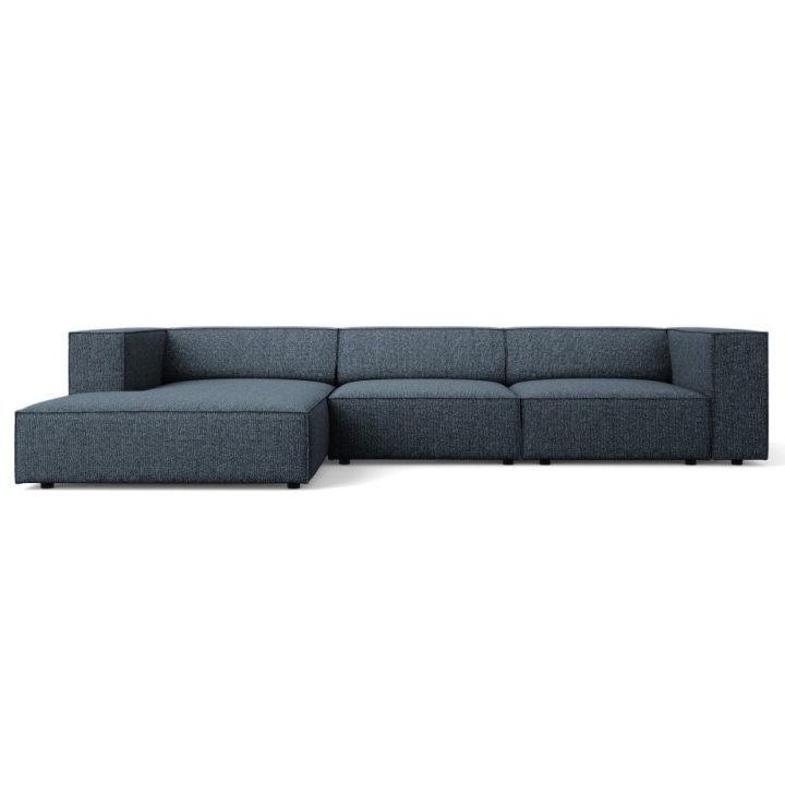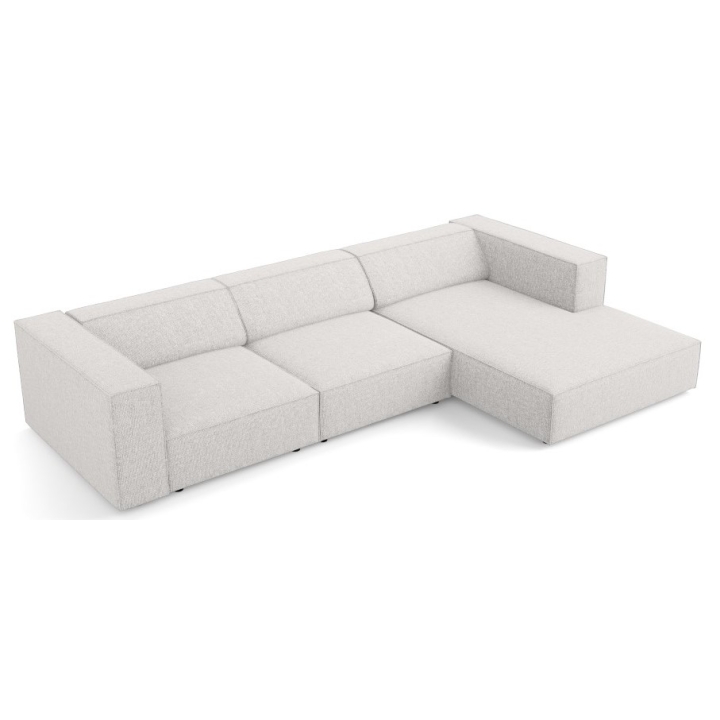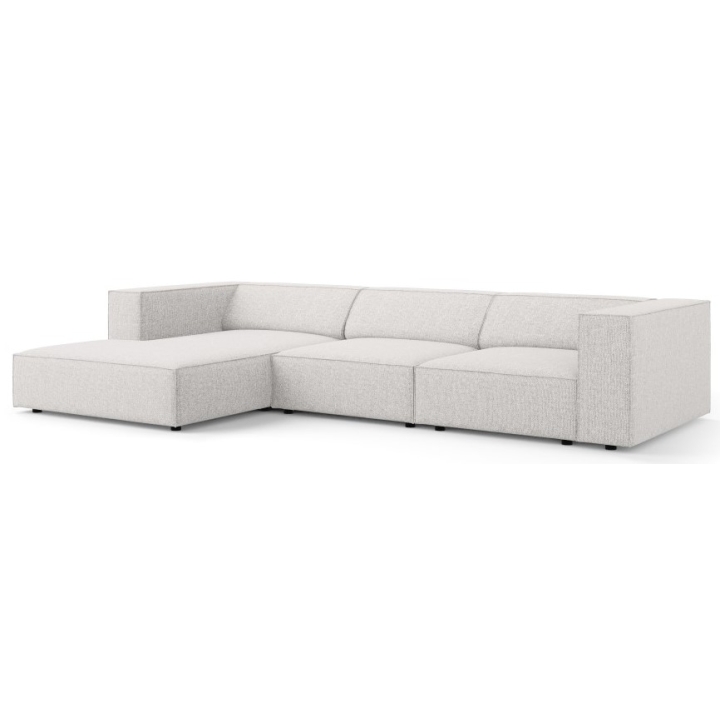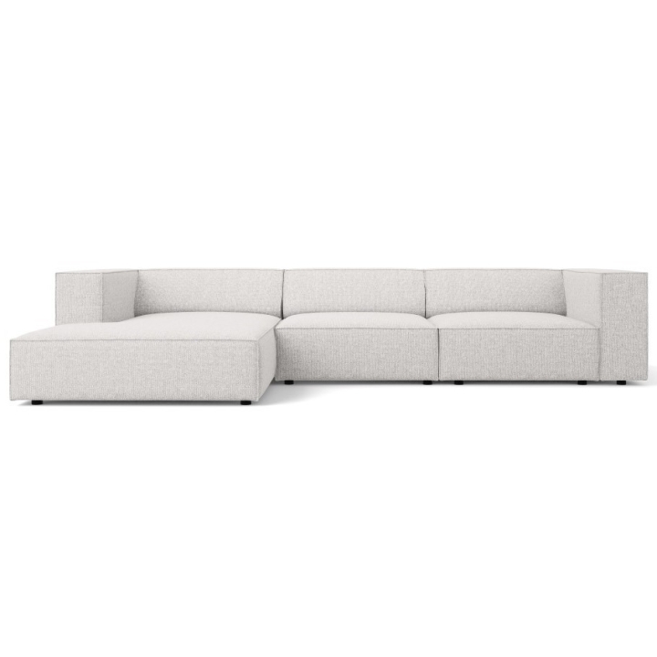 The Arendal chenille four-seater corner sofa by Cosmopolitan Design is a piece of furniture with a modern form, designed for comfort and to complement contemporary interiors. It is 284 cm wide, 166 cm deep and the overall height is 70 cm. The seat, placed on springs and filled with polyurethane foam, is at a height of 40 cm, providing comfortable support. Measuring 166 cm in length and 102 cm in width, the chaise longue offers space for relaxation. The furniture is equipped with armrests 22 cm wide and 54 cm high, which perfectly complement its design.