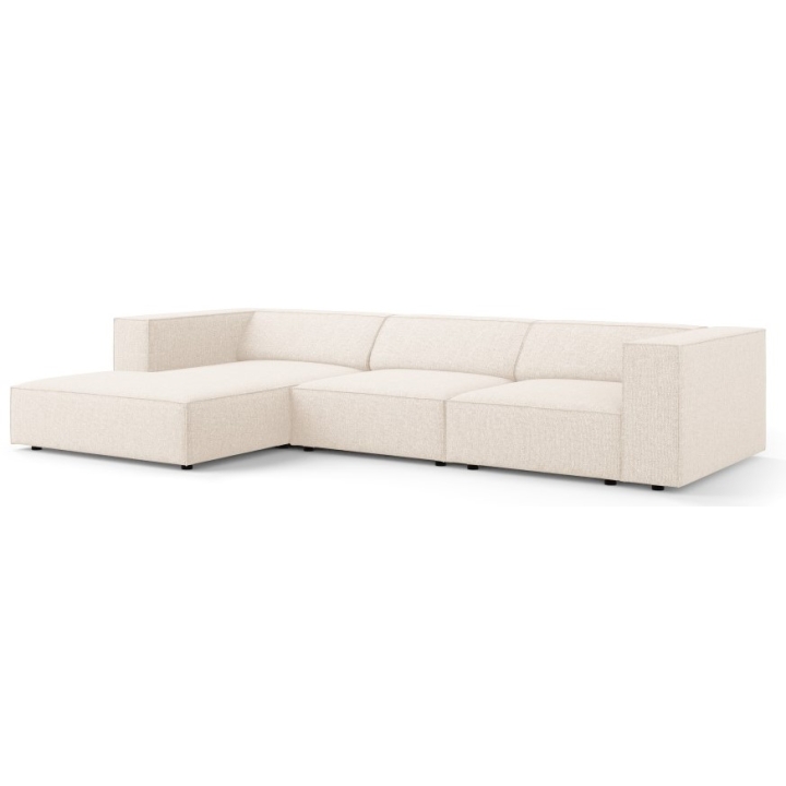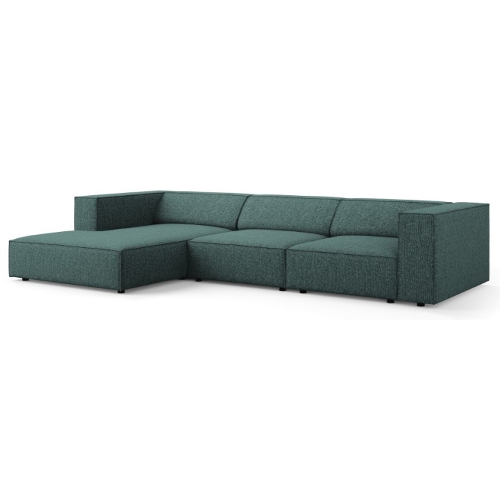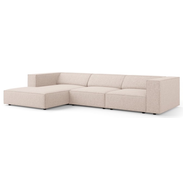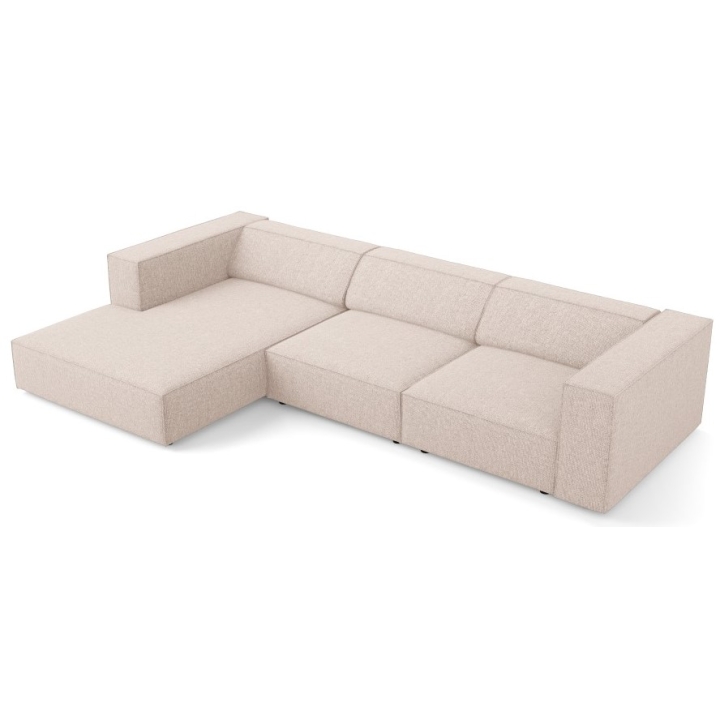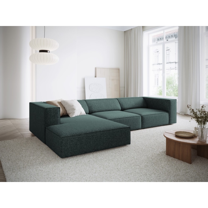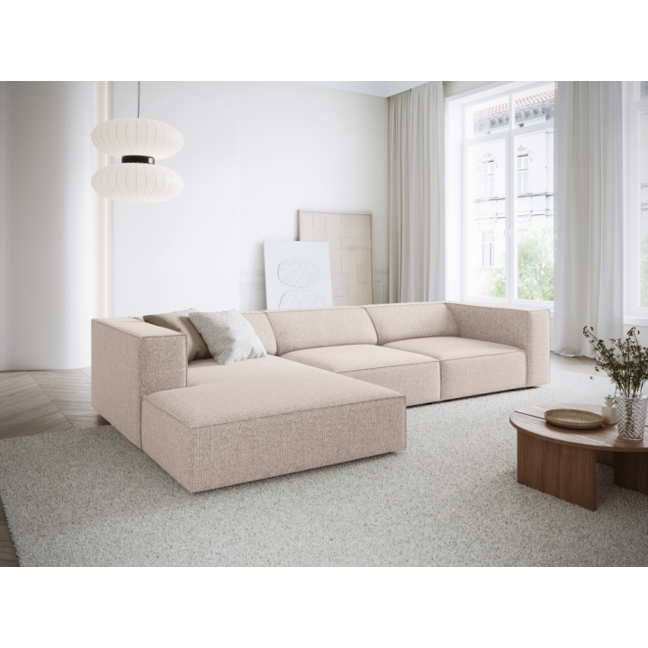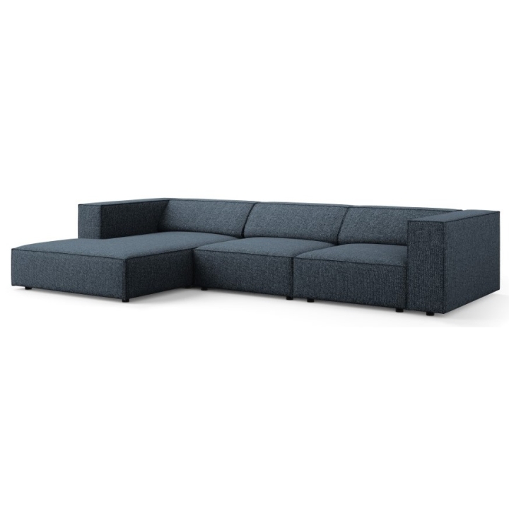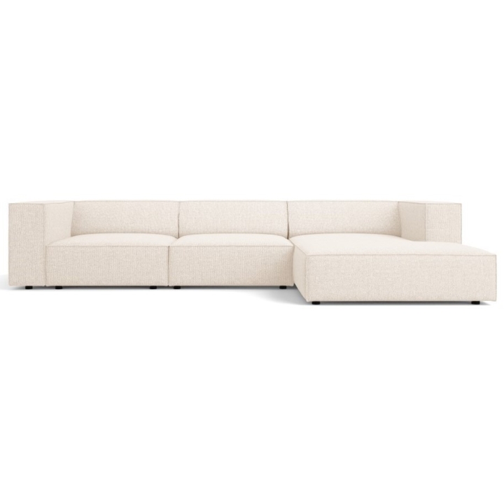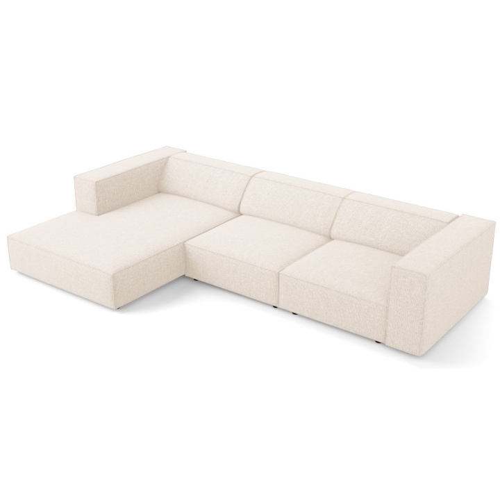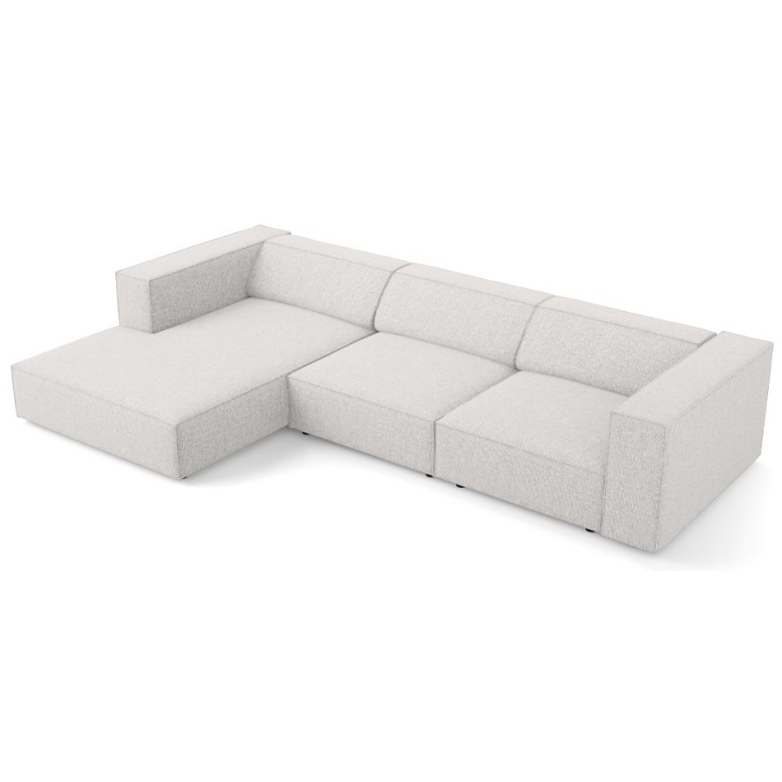 The Arendal chenille four-seater corner sofa by Cosmopolitan Design is a piece of furniture with a modern form, designed for comfort and to complement contemporary interiors. It is 284 cm wide, 166 cm deep and the overall height is 70 cm. The seat, placed on springs and filled with polyurethane foam, is at a height of 40 cm, providing comfortable support. Measuring 166 cm in length and 102 cm in width, the chaise longue offers space for relaxation. The furniture is equipped with armrests 22 cm wide and 54 cm high, which perfectly complement its design.