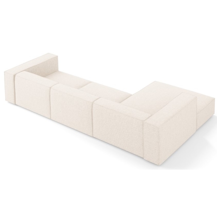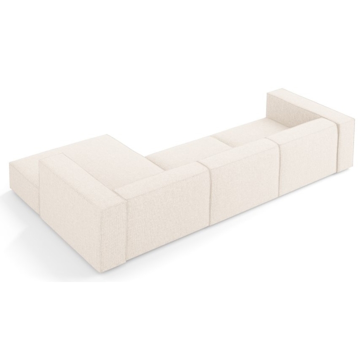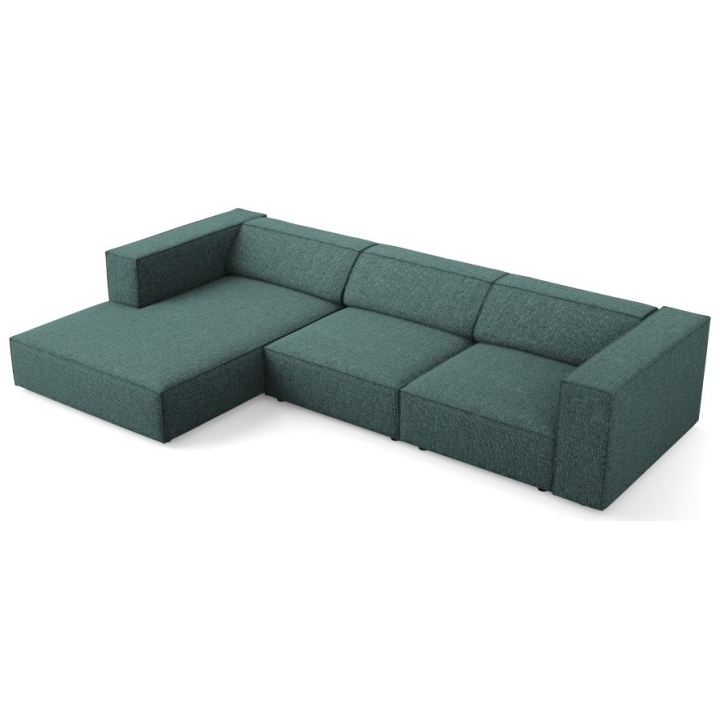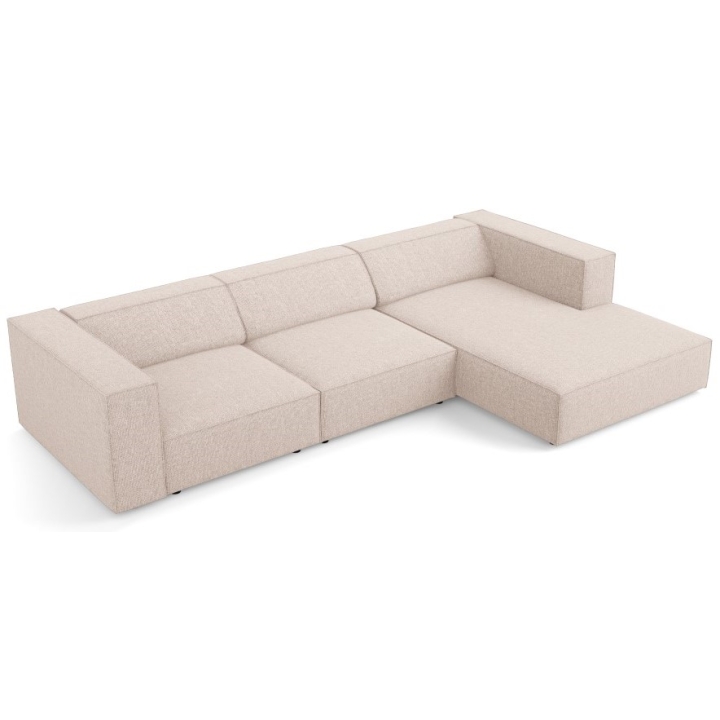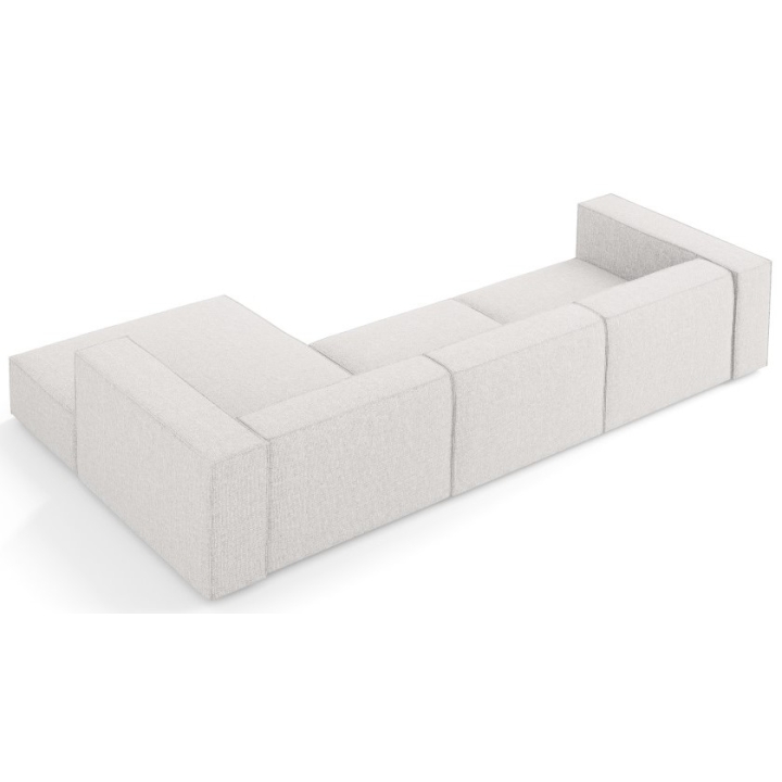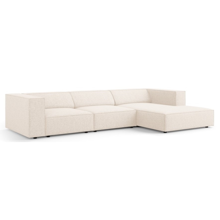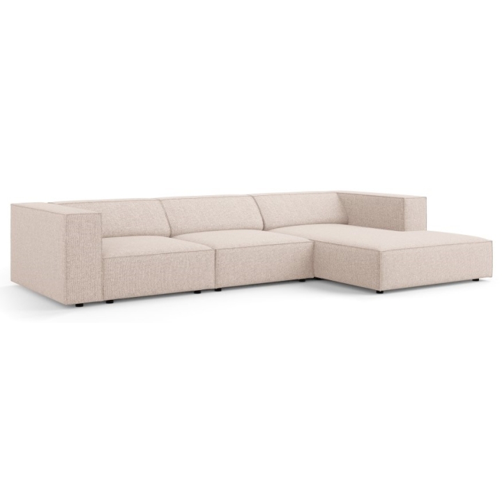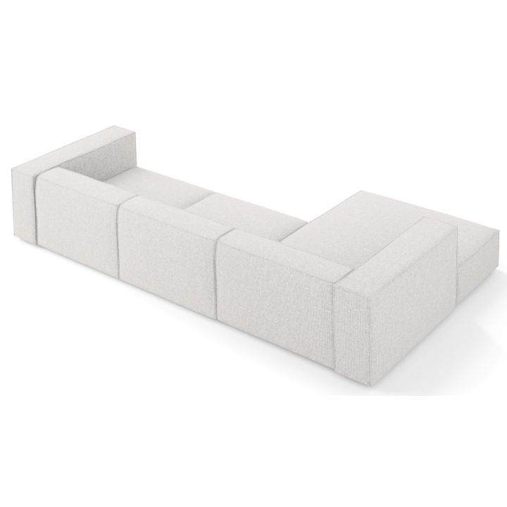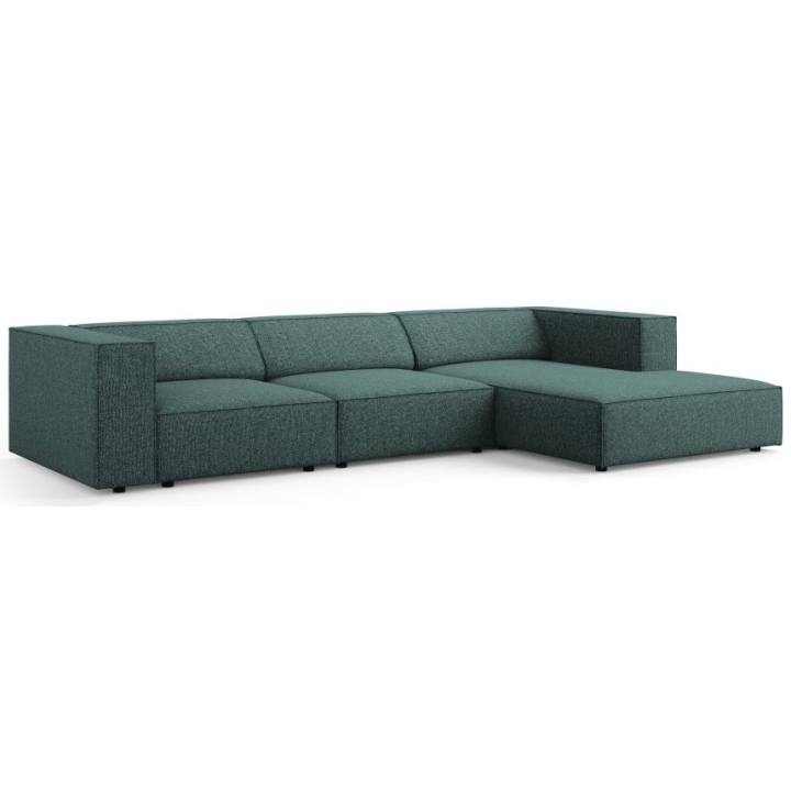 The Arendal chenille four-seater corner sofa by Cosmopolitan Design is a piece of furniture with a modern form, designed for comfort and to complement contemporary interiors. It is 284 cm wide, 166 cm deep and the overall height is 70 cm. The seat, placed on springs and filled with polyurethane foam, is at a height of 40 cm, providing comfortable support. Measuring 166 cm in length and 102 cm in width, the chaise longue offers space for relaxation. The furniture is equipped with armrests 22 cm wide and 54 cm high, which perfectly complement its design.
