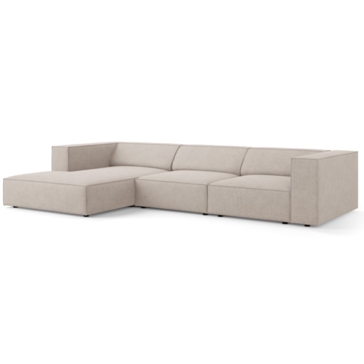 The Arendal chenille four-seater corner sofa with corduroy effect by Cosmopolitan Design is a modern piece of furniture with a thoughtful design. It is 284 cm wide and 166 cm deep, providing comfortable space for relaxation. The height of the furniture is 70 cm, while the seat is placed at a height of 40 cm, guaranteeing optimal support.