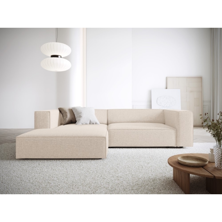 The Arendal chenille three-seater corner sofa from Cosmopolitan Design is a piece of furniture with a modern character, combining comfort and solid workmanship. It is 224 cm wide, 166 cm deep and 70 cm high. The seat set on springs and polyurethane foam provides adequate support, and the height of 40 cm facilitates comfortable use.