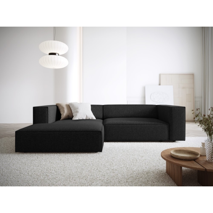 The model is equipped with a chaise longue measuring 166 cm in length and 102 cm in width, which allows you to position your legs freely while resting. The 22 cm wide and 54 cm high armrests provide stable support for the arms. The whole is supported by 2 cm high black plastic legs and the maximum load capacity of the corner is 350 kg.