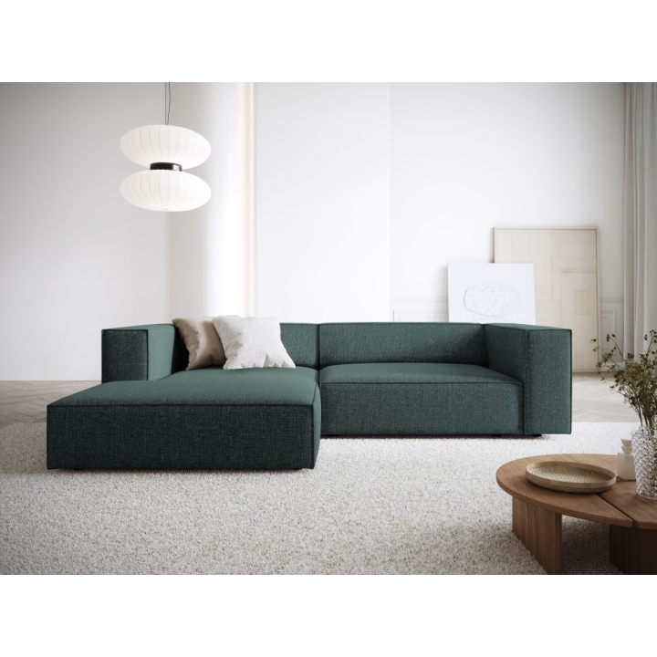 The model is equipped with a chaise longue measuring 166 cm in length and 102 cm in width, which allows you to position your legs freely while resting. The 22 cm wide and 54 cm high armrests provide stable support for the arms. The whole is supported by 2 cm high black plastic legs and the maximum load capacity of the corner is 350 kg.