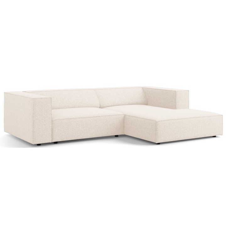 The Arendal chenille three-seater corner sofa from Cosmopolitan Design is a piece of furniture with a modern character, combining comfort and solid workmanship. It is 224 cm wide, 166 cm deep and 70 cm high. The seat set on springs and polyurethane foam provides adequate support, and the height of 40 cm facilitates comfortable use.