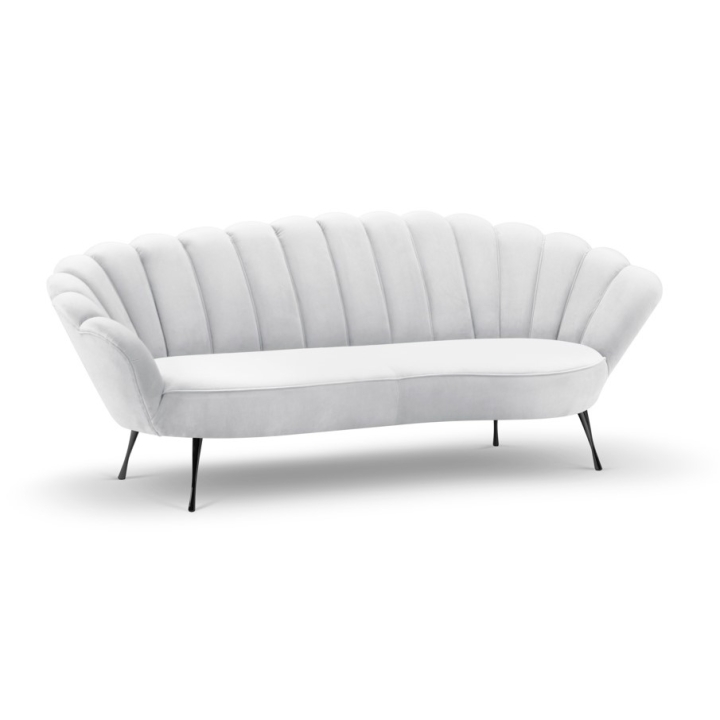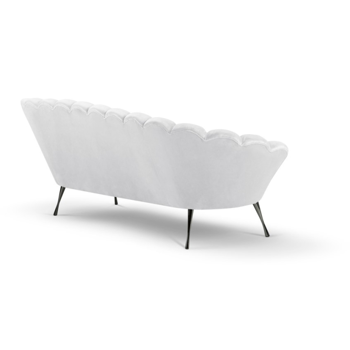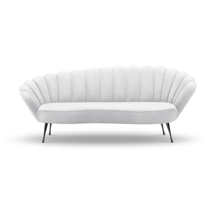 The Kingston Cosmopolitan-design sofa is a glamour-style model that stands out with its high metal legs ( 24 cm) in the colour of your choice and upholstery in velvet fabric in a choice of two variants: Riviera or Magic Velvet. With a width of 224 cm, a depth of 95 cm, a height of 85 cm and a seat height of 45 cm, the sofa is perfect for elegant living rooms, lounge areas and interiors decorated in a modern style. The lack of a sleeping function and a bedding container makes this model designed as a comfortable place for everyday rest. The sides of the sofa are designed asymmetrically, the height of one of them being 70cm and the other 80cm.