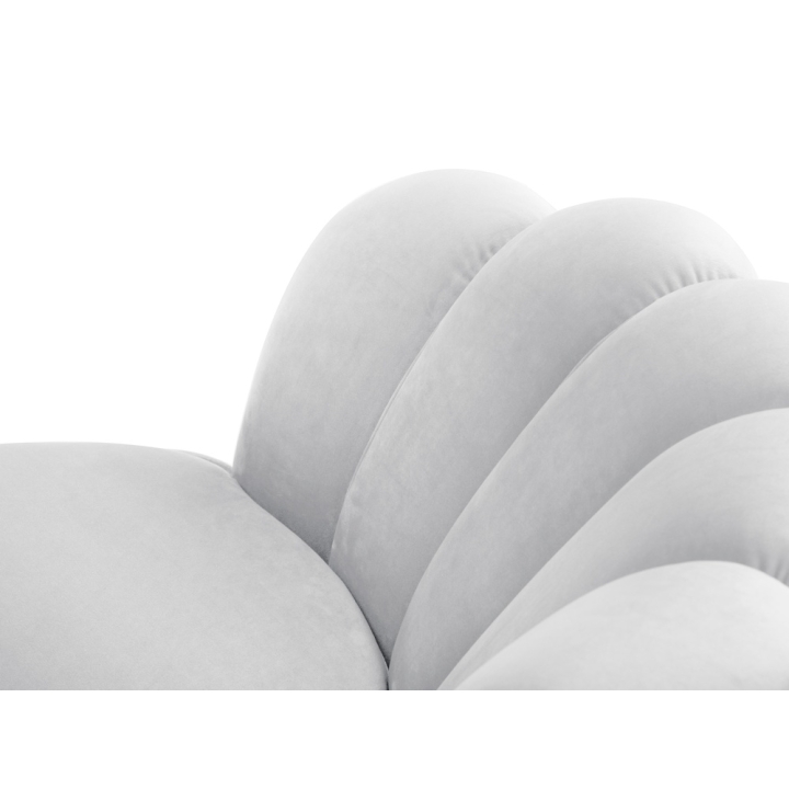The seat is filled with polyurethane foam with a high elasticity of 30 kg/m³ and a layer of oatmeal 300 g/m², supported by elastic belts, providing comfort and adequate springiness. The 28 kg/m³ polyurethane foam backrest guarantees adequate back support. The upholstery in Riviera fabric is characterised by a smooth, soft surface with a subtle sheen, a high abrasion resistance of 100,000 Martindale cycles and water cleanability. Alternatively, the Magic Velvet fabric features Cleanaboo technology, which reduces liquid absorption, resists fuzzing and is pet-friendly. Martindale test of 60000 cycles of abrasion resistance.