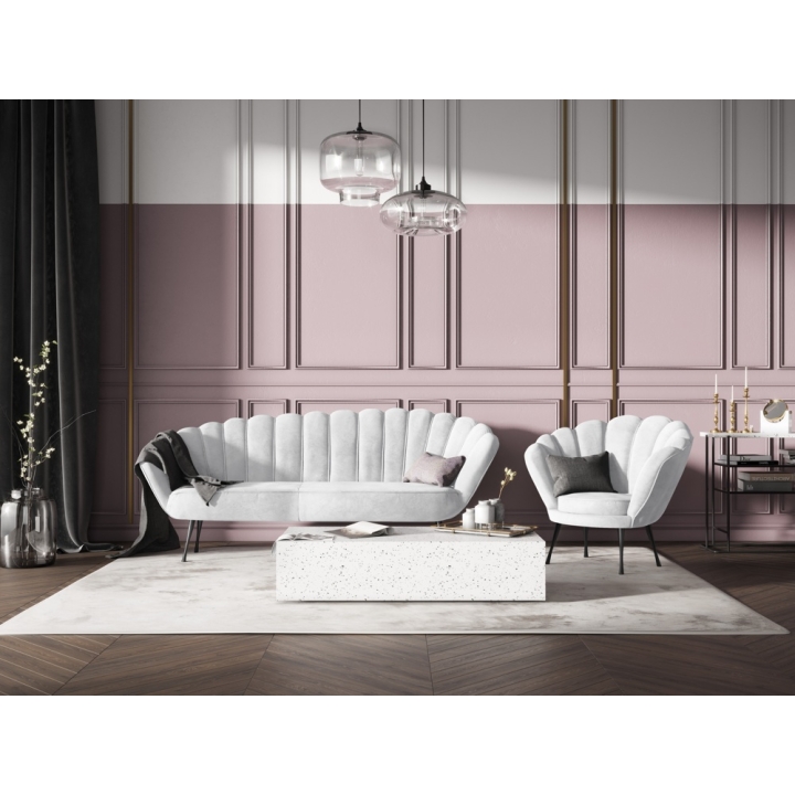 The Kingston sofa on high metal legs with velour upholstery is the ideal choice for those looking for a comfortable and stylish piece of living room furniture. A frame made of solid pine, particleboard and plywood ensures durability and stability. The ability to personalise the colour of the upholstery and legs allows you to tailor the sofa to your individual preferences.