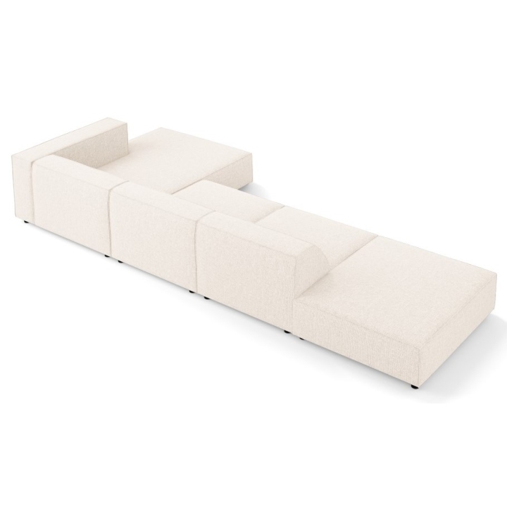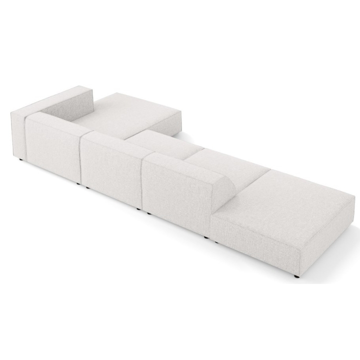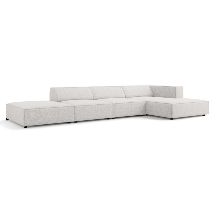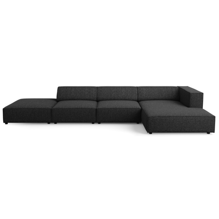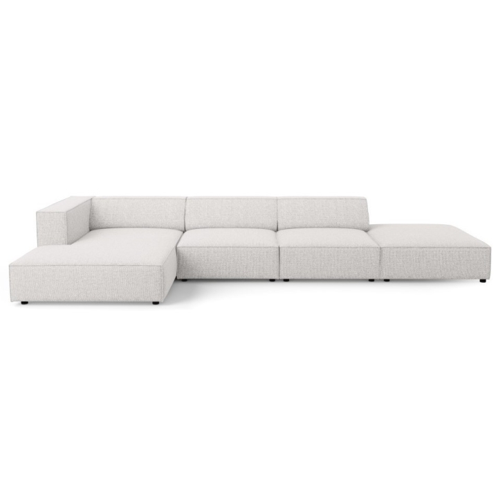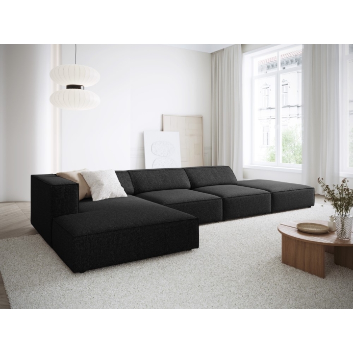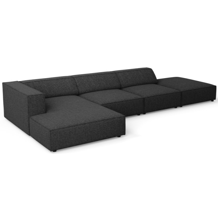 The structure is set on black plastic legs 2 cm high. The total weight of the corner sofa is 144 kg and its maximum load is 400 kg. The model fits into the aesthetics of modern arrangements, combining simplicity of form with refined details.