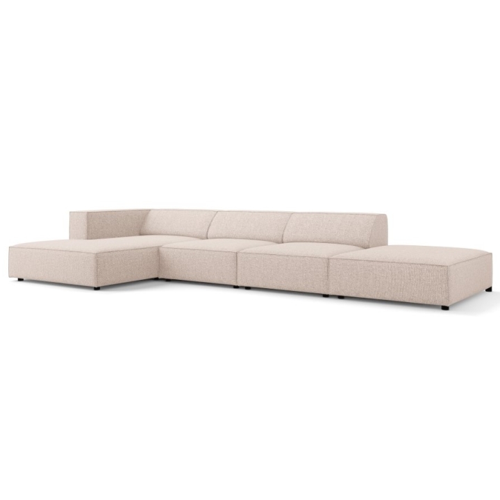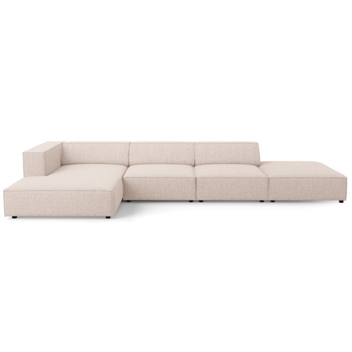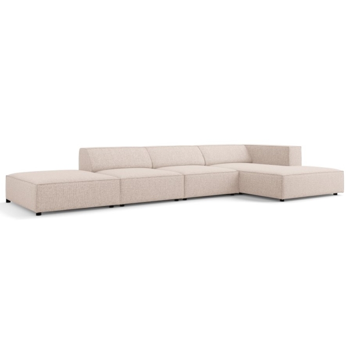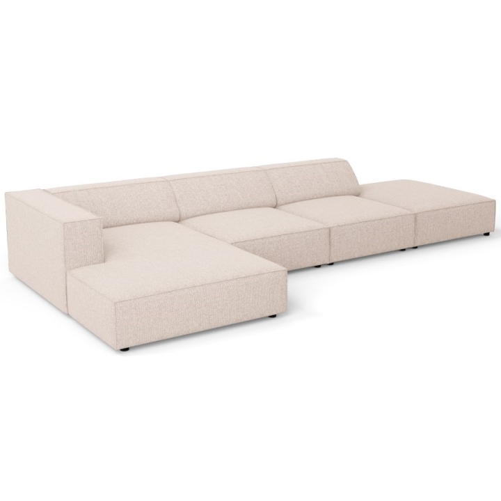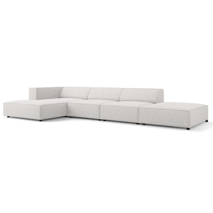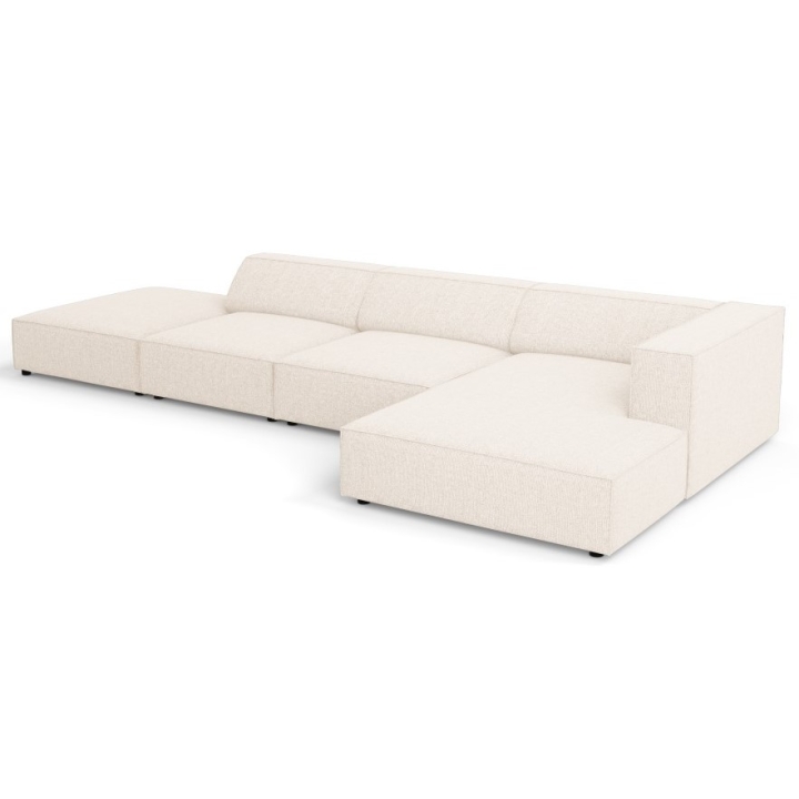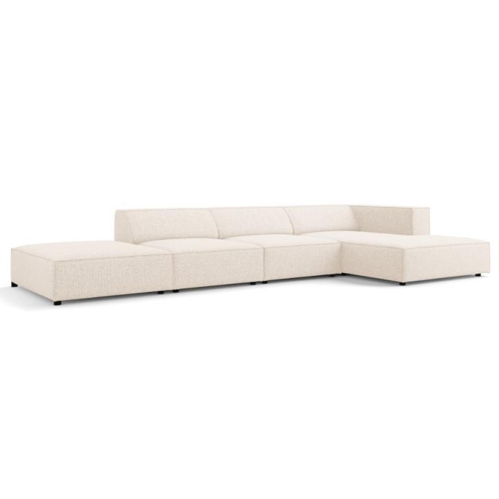The structure is set on black plastic legs 2 cm high. The total weight of the corner sofa is 144 kg and its maximum load is 400 kg. The model fits into the aesthetics of modern arrangements, combining simplicity of form with refined details.