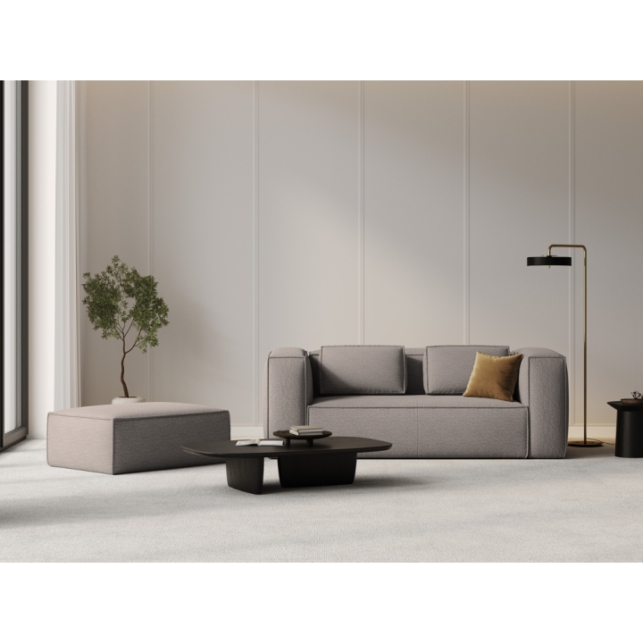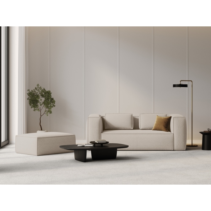 The upholstery is made of Bubble fabric with a unique structure. Its surface is covered with small, convex elements that give it a three-dimensional appearance and a texture that can be felt under the fingers. The material is reminiscent of boucle, yet retains the softness and softness characteristic of velvet. The available colour palette ranges from muted to more saturated shades, with some colours subtly changing tone depending on the lighting. The mélange structure of the material makes any dirt less visible and the soft sheen adds depth. The WaterBlocked coating protects the fabric from liquid penetration, making it easy to keep the sofa clean. Abrasion resistance of 100,000 cycles.