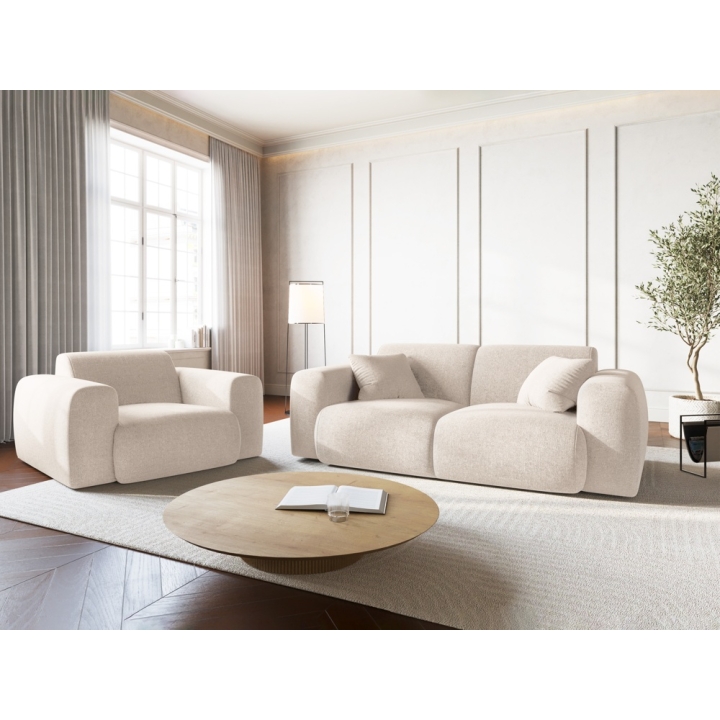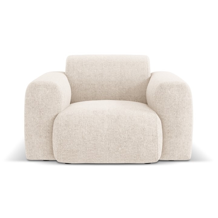 The Nolio Cosmopolitan-design armchair is a modern piece of furniture with rounded shapes that fits perfectly into designer interior settings. With a width of 105 cm, a depth of 96 cm, a height of 72 cm and a seat height of 36 cm, it is comfortable to use, while the seat depth of 55 cm makes it possible to lean back comfortably or relax casually. The rounded shape and minimalist design give it a unique character, while the low, almost invisible legs emphasise its modern style.
