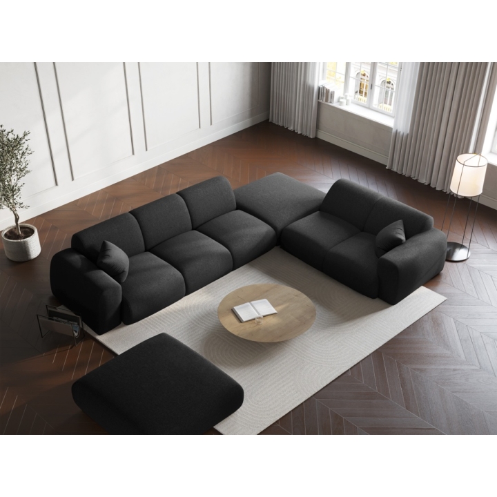 The Nolio 315x250 Cosmopolitan-design corner sofa is a modern, spacious piece of furniture with rounded shapes that blends perfectly with elegant and minimalist interiors. With a width of 315 cm, a depth of 250 cm, a height of 72 cm and a seat height of 36 cm and a depth of 55 cm, it provides comfort and convenience. The model is available in a left and right version, allowing it to fit into the layout of the room. The rounded shapes and lack of sharp edges make the corner sofa fit perfectly into modern arrangements, and the wide range of colours allows you to match the upholstery individually.
