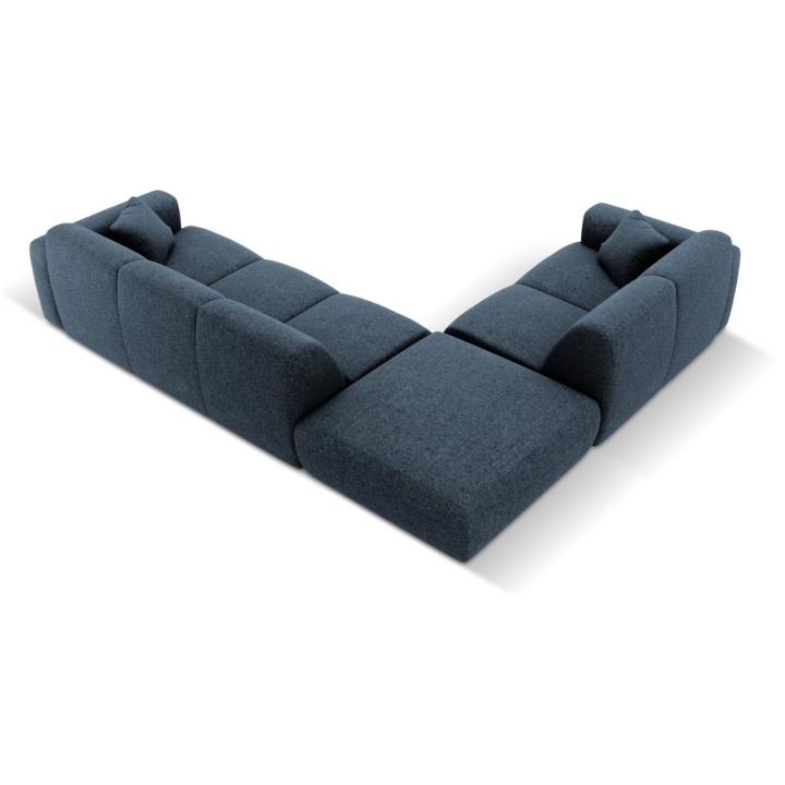 The corner sofa is upholstered in Haga chenille fabric, characterised by a subtle 3D effect and a soft, pleasant-to-touch surface. The material is abrasion resistant (>60,000 Martindale cycles), flame retardant and OEKO-TEX® STANDARD 100 certified, which confirms its safety and durability. The seat is filled with a combination of 28 kg/m³ polyurethane foam, a 300 g/m² oat layer and springs to ensure flexibility and comfort. The backrest is also filled with 28 kg/m³ polyurethane foam and 300 g/m² oat, which guarantees soft back support.