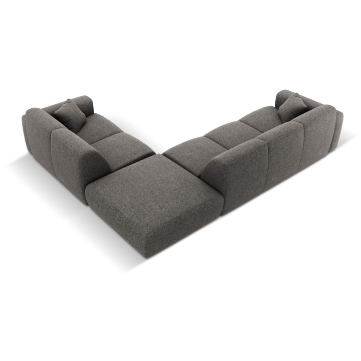 The corner sofa is upholstered in Haga chenille fabric, characterised by a subtle 3D effect and a soft, pleasant-to-touch surface. The material is abrasion resistant (>60,000 Martindale cycles), flame retardant and OEKO-TEX® STANDARD 100 certified, which confirms its safety and durability. The seat is filled with a combination of 28 kg/m³ polyurethane foam, a 300 g/m² oat layer and springs to ensure flexibility and comfort. The backrest is also filled with 28 kg/m³ polyurethane foam and 300 g/m² oat, which guarantees soft back support.