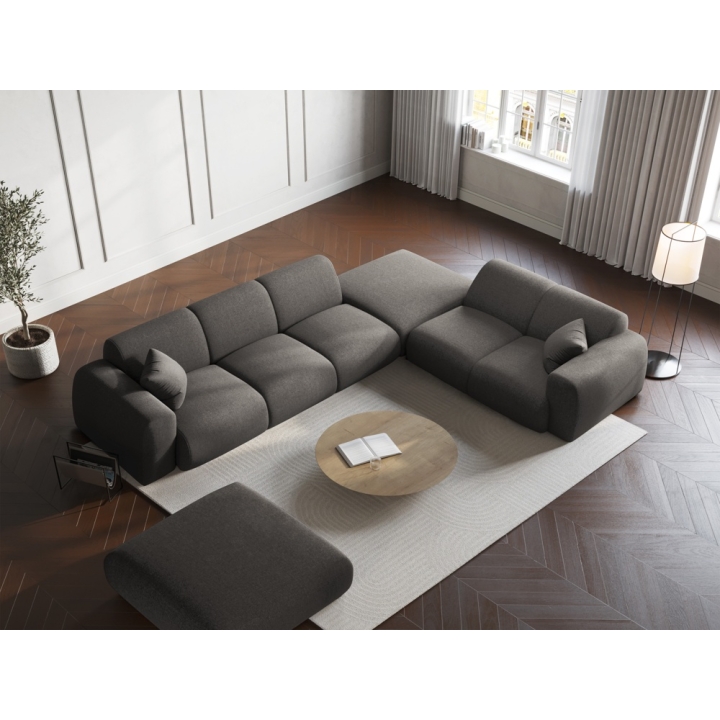 The Nolio 315x250 Cosmopolitan-design corner sofa is a modern, spacious piece of furniture with rounded shapes that blends perfectly with elegant and minimalist interiors. With a width of 315 cm, a depth of 250 cm, a height of 72 cm and a seat height of 36 cm and a depth of 55 cm, it provides comfort and convenience. The model is available in a left and right version, allowing it to fit into the layout of the room. The rounded shapes and lack of sharp edges make the corner sofa fit perfectly into modern arrangements, and the wide range of colours allows you to match the upholstery individually.