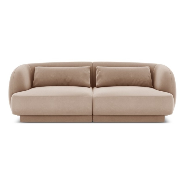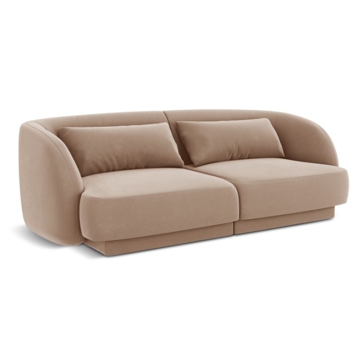 The Tulum Velour Cosmopolitan-design 2-seater sofa is a modern model with rounded shapes that fits perfectly into minimalist and designer interiors. With a width of 180 cm, a depth of 90 cm, a height of 70 cm and a seat height of 40 cm, it provides comfort for both everyday relaxation and social gatherings. The upholstery in Bluvel velour fabric, available in various colour variants, gives the sofa a uniquely soft and elegant look. The two decorative cushions included, filled with silicone, further enhance the comfort of use, while the low black plastic legs subtly blend with the body of the furniture. The seat's usable width is 156 cm and its depth is 65 cm, allowing for comfortable rest in front of the TV.