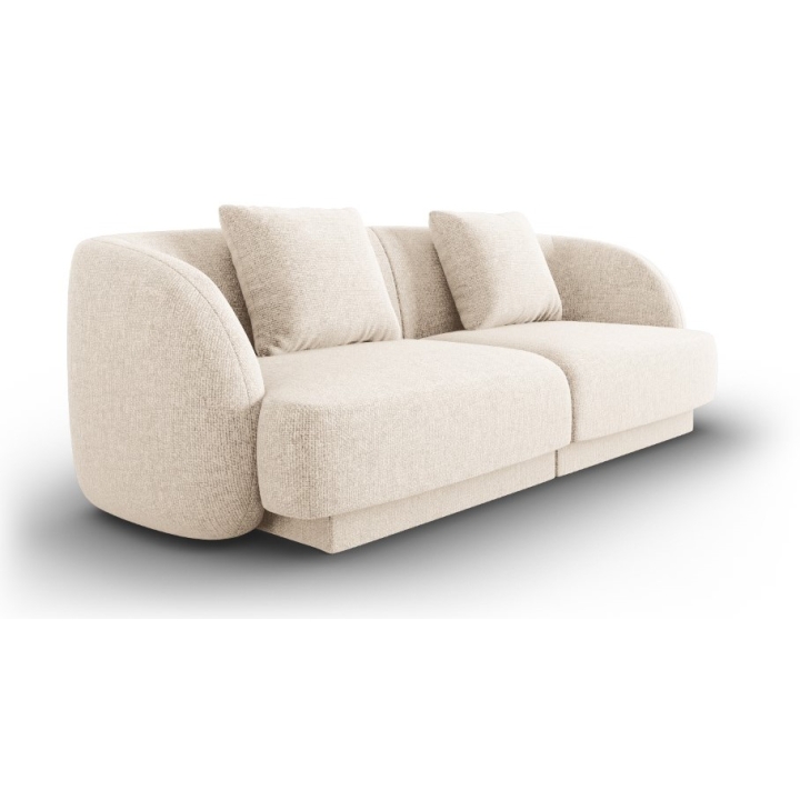 The Tulum Shenil Cosmopolitan-design 2-seater sofa is a modern model with rounded shapes that will be perfect for minimalist and designer interiors. With a width of 180 cm, a depth of 90 cm, a height of 70 cm and a seat height of 40 cm, it provides comfort for both everyday relaxation and social gatherings. The upholstery in Haga chenille fabric, available in a wide range of colours, gives the sofa a unique texture and 3D effect. The two decorative cushions included increase the comfort of use and the low black plastic legs subtly blend with the body of the furniture.