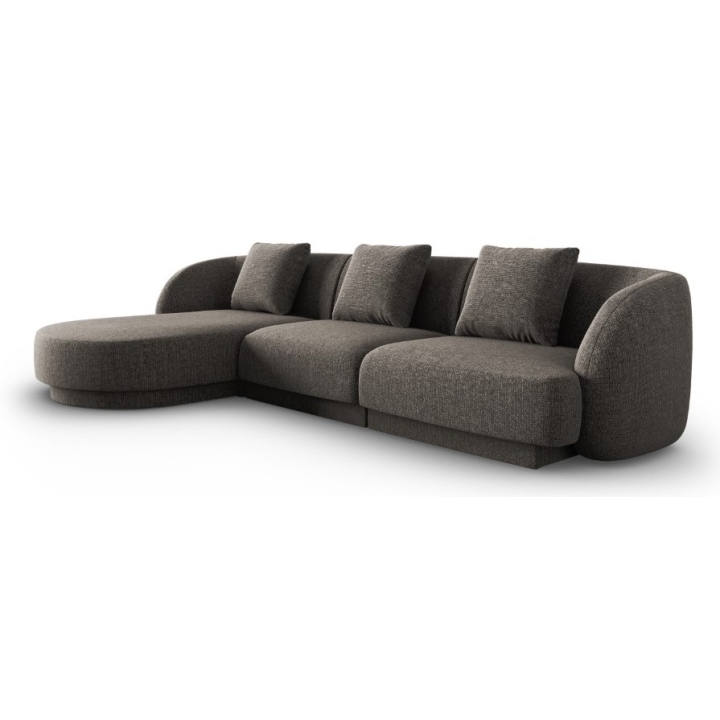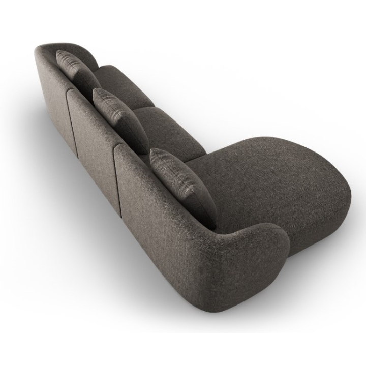 The Tulum Shenil Cosmopolitan-design 4-seater corner sofa is a modern model with rounded shapes that fits perfectly into minimalist and designer interiors. With a width of 255 cm, a depth of 156 cm, a height of 70 cm and a seat height of 40 cm, it provides comfort for both everyday relaxation and social gatherings. The upholstery in Haga chenille fabric, available in a wide range of colours , is distinguished by its 3D effect, subtle gloss and high abrasion resistance (60,000 Martindale cycles). The low plastic legs, almost invisible, emphasise the modern character of the furniture.