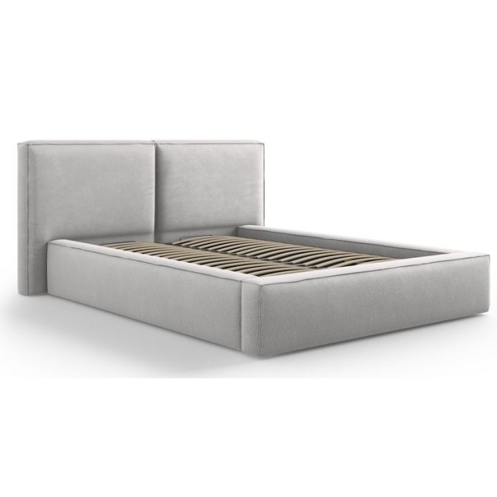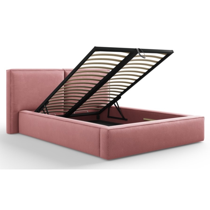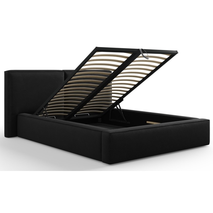 The bed frame is made of furniture board with the addition of wooden elements, which translates into durability and resistance to everyday use. The metal frame equipped with flexible plywood slats ensures optimal ventilation of the mattress, while also ensuring its stability. The space under the mattress hides a bedding container, divided into two compartments with dimensions of 100x200x21 cm. This solution makes it possible to store duvets, pillows and other textiles, allowing for efficient use of the available space.