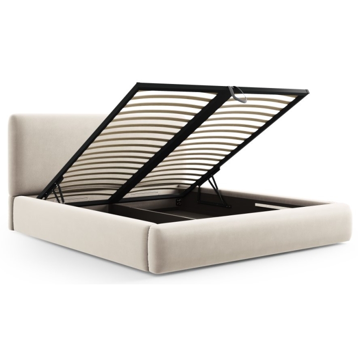 Under the mattress there is a bedding container, divided into two compartments, each measuring 90×200×20 cm, which facilitates space organisation. This makes the storage of duvets, pillows and textiles convenient and tidy, while the whole piece maintains a consistent, aesthetic appearance.