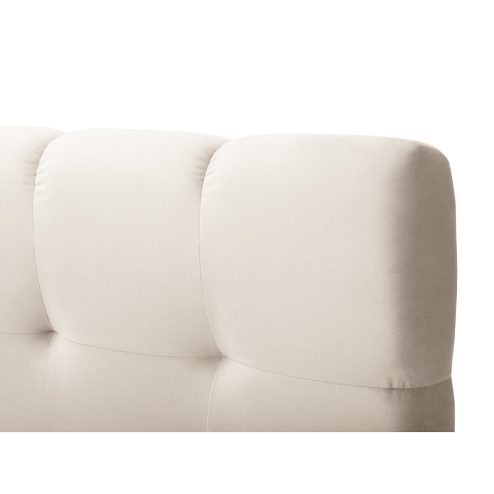 The upholstery is made of Bluvel velour, a smooth fabric with long pile , soft and pleasant to the touch. It is highly resistant to abrasion, which significantly reduces the risk of damage (Martindale test: 50,000, 320 g/m², composition: 100% polyester) Available in a wide range of colours, it gives the bed a soft, velvety texture and emphasises its stylish appearance.