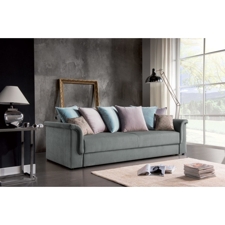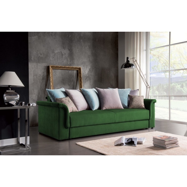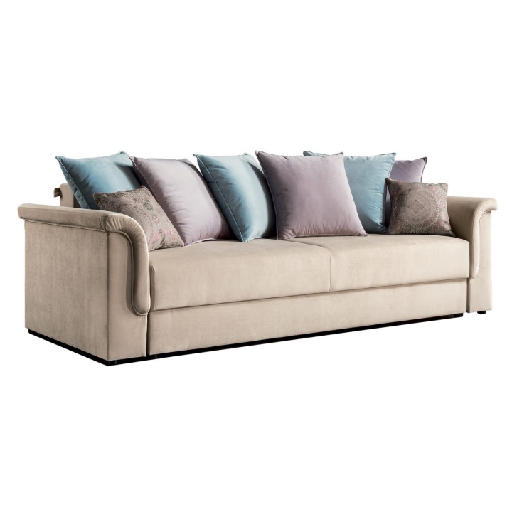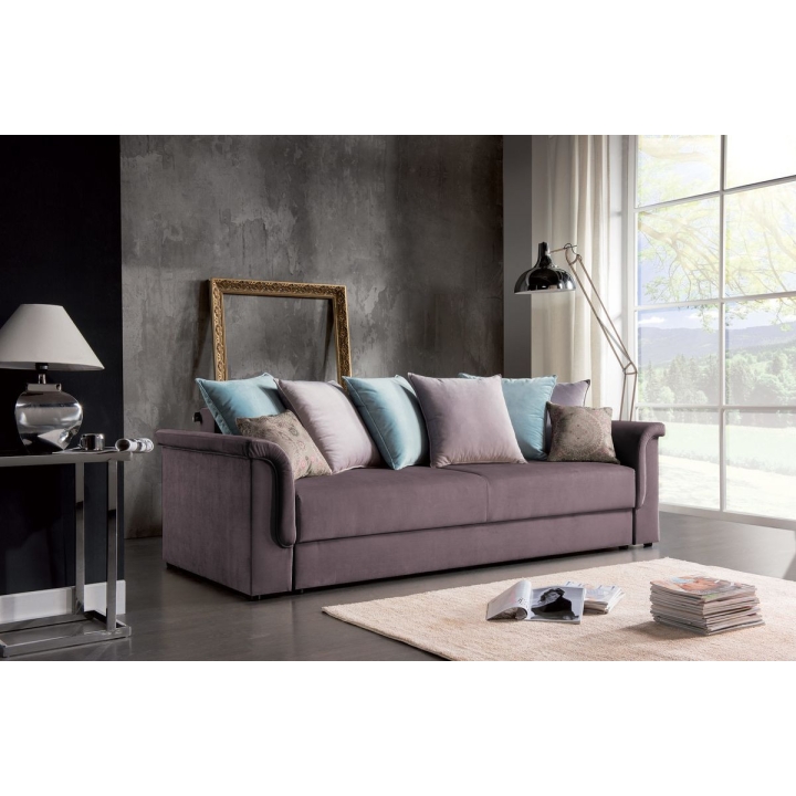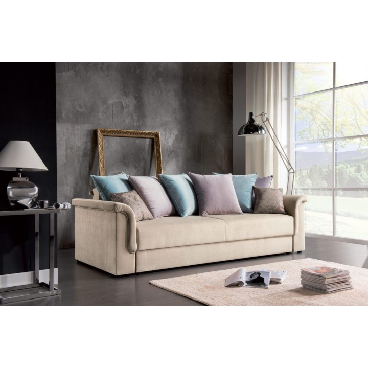 The product is available in many variants (Classic, Perfect, Elegance, Prestige, Exclusive). It has PVC legs. The height is 85 cm, the width is 235 cm, the depth is 100 cm and the sleeping area is 150x195 cm.