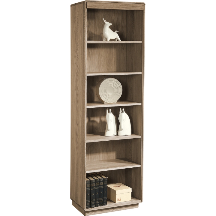 The practical bookcase type 11 from the Atlanta collection by Dekort is a classic furniture proposal made of high quality oak wood with elements of furniture board veneered with natural oak veneer. The bookcase is equipped with several functional shelves, which you can arrange freely. This piece of furniture is made for those with a taste for unique wood grains, knots and discolouration. Thanks to its universal, modern design, the Atlanta bookcase will fit into almost any type of interior. The subdued, rounded shape of the carcasses, accented with distinctive elements, creates an original, unique whole.