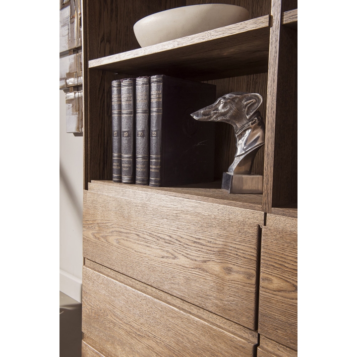 The capacious Atlanta type 13 bookcase is a project by the renowned furniture manufacturer Dekort. The furniture is characterised by modern minimalism combined with a subtle form. It was made of top quality raw materials in the form of solid wood and furniture board covered with natural veneer. In addition, it comes in a choice of two colour versions: natural oil and burnt oil. The bookcase is equipped with numerous shelves and a practical cupboard. The Atlanta bookcase is the perfect complement to modern interiors characterised by a modernist style with a hint of classicism. The beautiful structured surface of the brushed fronts will delight any user.