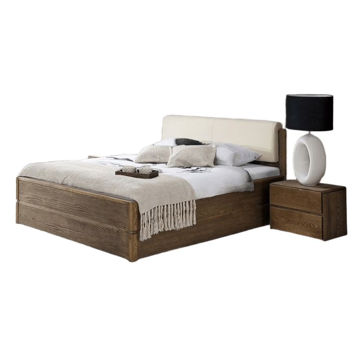 The Atlanta type 18 (180x200) bed by Dekortis a combination of modern style, simple form and functionality. The furniture is available in two colour versions: burnt oil and nature oil. The head of the bed is upholstered with ecru-coloured eco leather. The furniture is equipped with a frame and chest. The bed from the Atlanta collection will fit into almost any type of interior thanks to its universal, modern design. The offer presented does not include a mattress, the mattress must be ordered additionally (maximum mattress height 20 cm).