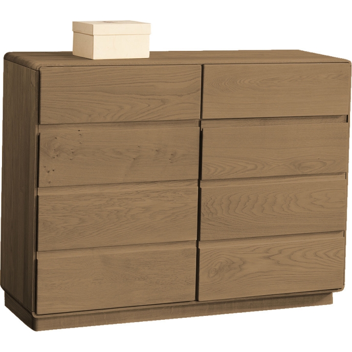 The Atlanta chest of drawers by Dekort is a capacious, modern piece offurniture distinguished by its excellent workmanship, precision and aesthetic appearance. The highest quality raw materials were used in the production of the furniture in the form of solid wood and furniture board veneered with natural veneer, which ensures the durability and strength of the product. The chest of drawers is equipped with capacious drawers which will allow you to store your things. The manufacturer offers a choice of one of two colour versions, such as natural oil or burnt oil. The furniture delights with the toned, rounded shape of the bodies, accented with expressive elements, creating an original and unique whole that will work well in any interior.